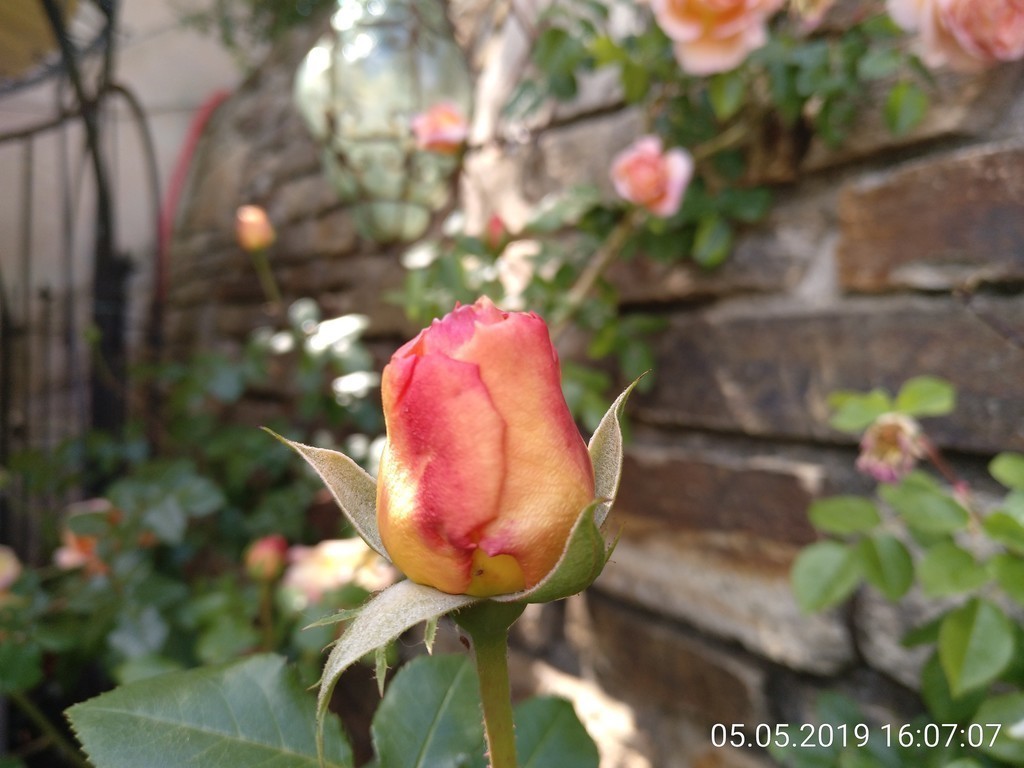 Jetzt kommt eine meiner dankbarsten Rosen. die Juanita vom Kordes. Sie ist im Katalog mit 0.80 - 1,20m angegeben, bei mir ist sie 3 m hoch. Sie blüht den ganzen Sommer, ist nie ohne Blüten und ein wahrer Bienenmagnet. Die hat ein Riesen Gestell, damit sie so schön da stehen kann wie sie steht.