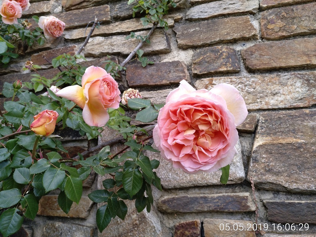 Das sind jetzt die anderen namenlosen Markrosen. Bin schon gespannt, wie die sich entwickeln werden. Sie stehen jetzt den 2-3 Sommer dort. Hatte sie ja zuerst in Töpfe gesetzt wegen der Farben und Blütenformen.