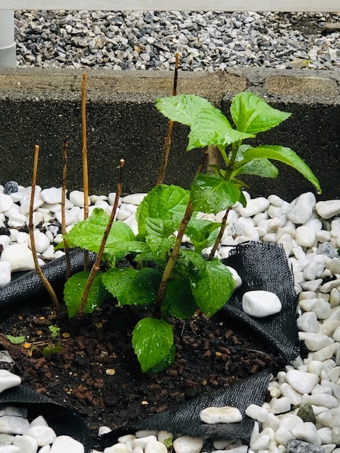 Mir fällt grad noch ein, dass Du ja Folie und Kiesel in Deinem Garten hast, da brauchst Du eigentlich keine weitere Abdeckung. Schlitz die Folie mehrfach ein, dass Du ein Loch mit ca. 50 cm Durchmesser graben kannst. Wenn die Hortensie drin sitzt und Du die Erde wieder aufgefüllt und angegossen hast, schlägst Du die Folie zurück und packst die Steine wieder drumrum. Nächstes Frühljhr bis spätestens Ende April erstmalig mit Hortensiendünger düngen. Könntest Du Dir den aus Österreich mitbringen, falls das in Japan so schwierig ist?