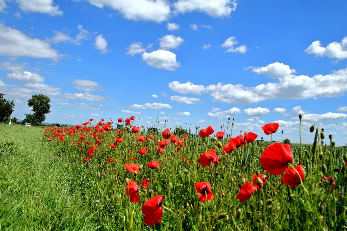 • Oh, so schön, Karl! Saftig grünes Gras, knallroter Mohn und starkblauer Himmel ... für mich der Inbegriff des Monats Juni in freier Wildbahn.