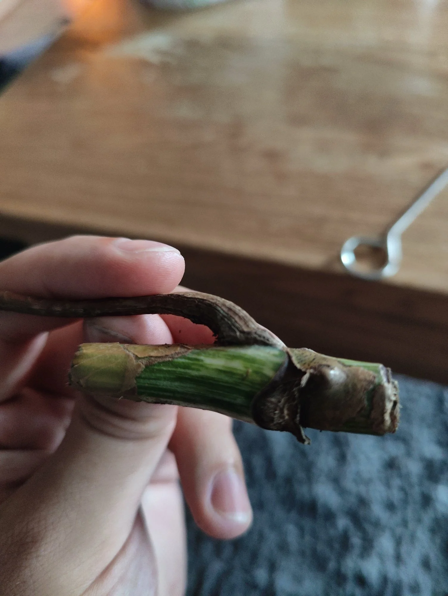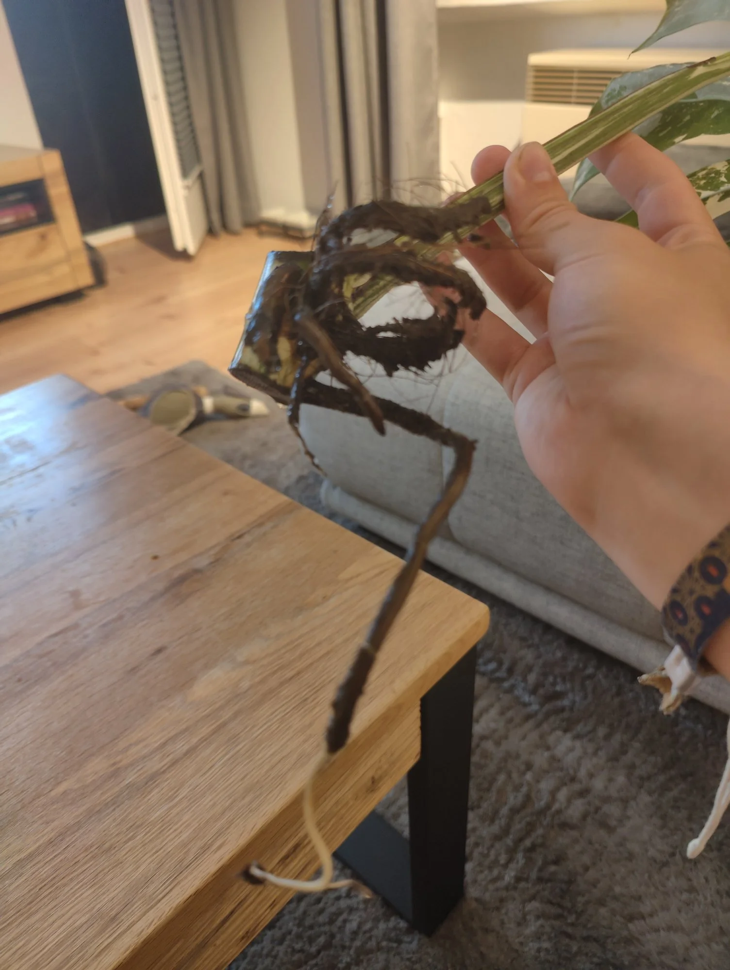 Habe am Sonntag nen Monstera deliciosa variegata Stammsteckling gekauft, als daheim angekommen sind ihn natürlich erstmal vom Zewa befreit und bemerkt, dass er leider schon sehr schwarz am Stängel ist, hab erstmal nen Fingernagel Test gemacht war aber zu dem Zeitpunkt noch richtig fest. Jetzt ist's aber schon weicher geworden, bislang hat es sich's zum Glück noch nicht weiter ausgebreitet...