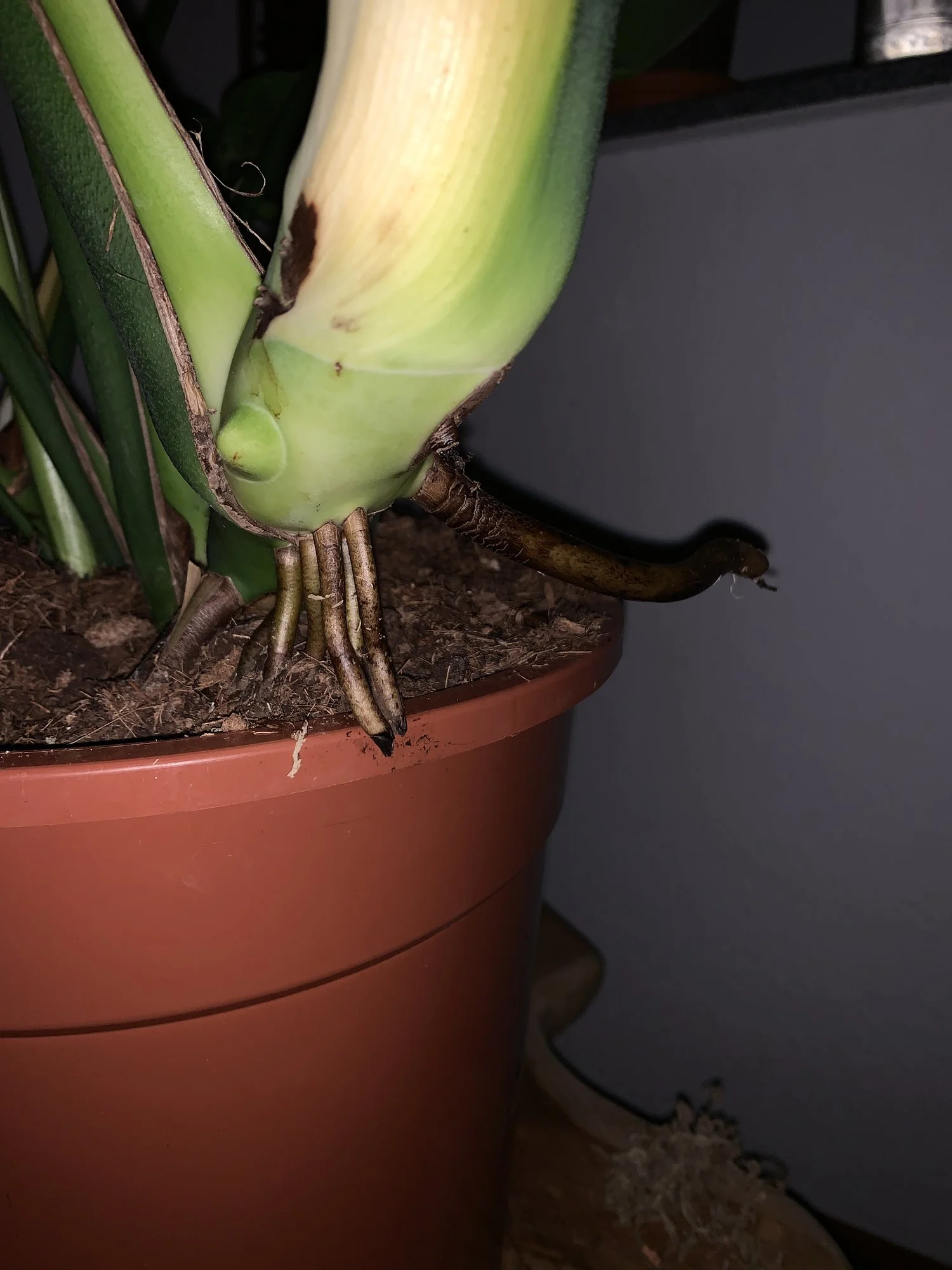 Wie es sich schon vermuten lässt, geht es um meine Monstera. Ich habe soeben festgestellt, dass das erste Blatt anfängt, gelblich-braune Punkte zu bekommen. Einen ähnlichen Fall hatte ich bei einem Bekannten, wo seine gesamte Pflanze innhalb weniger Tage komplett voll war mit diesem "Befall/- der Mangelerscheinung(?)". Ich habe sie seit dem Kauf nicht umgetopft und ganz wenig gegossen. Wurzeln dürften keine Fäulnis vorweisen. Sie hat jetzt auch letzte Woche ihr neues Blatt komplett ausgerollt und bekommt auch schon das nächste.. also kann man dem entnehmen, dass es ihr "eigentlich" gut geht. Ihr Standort ist an einem Südfenster, weil Winter. Allerdings ist knapp zwei Meter zur rechten die Balkon Tür.. vermute ich, dass sie Zugluft nicht abkann und das Blatt beschädigt hat? Das gesamte Wurzelwerk ist ziemlich kompakt. Es befindet sich wahrscheinlich nur noch ganz wenig Erde im Topf. Ich habe sie so in einem Übertopf gegesellt und meine andere Vermutung ist, dass die Wurzeln, die bereits unten ausschlagen, keinen Sauerstoff bekommen haben? Es kann viele Ursachen haben! Nährstoffmangel(Dünger), Umtopfen? Umtopfen? ich sprühe sie regelmäßig mit weichem Wasser ein. Raumtemperatur ist constantly bei 21 C+ ,die Luftfeuchtigkeit bei 30-40%+.