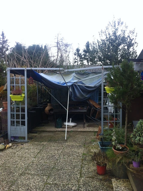 Mein Pavillon steht Jahre, aber diesmal hab ich einen Fehler gemacht, wie Du erkennen kannst - der Sonnenschutz war schon nicht mehr so schön und ich wollte einen neuen kaufen oder nähen, deshalb haben wir ihn drauf gelassen...:rolleyes:
