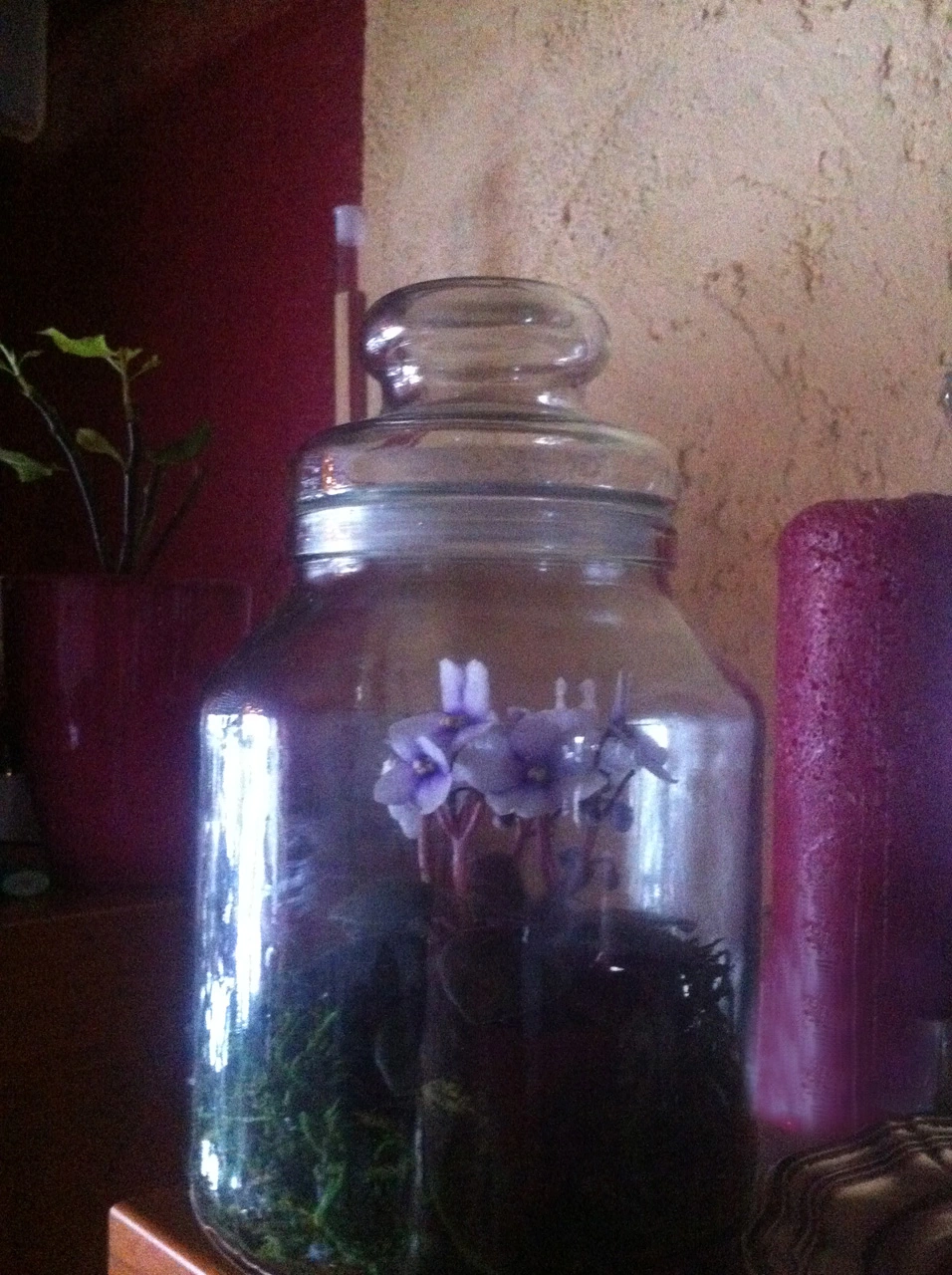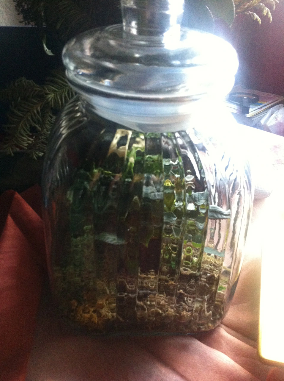 Die Kleinen Pflänzchen, deren Erde feucht war, hab ich mit Moos und ein paar Rinden in ein luftdichtes Glas gesteckt und werde es ohne zu gießen nur beobachten.