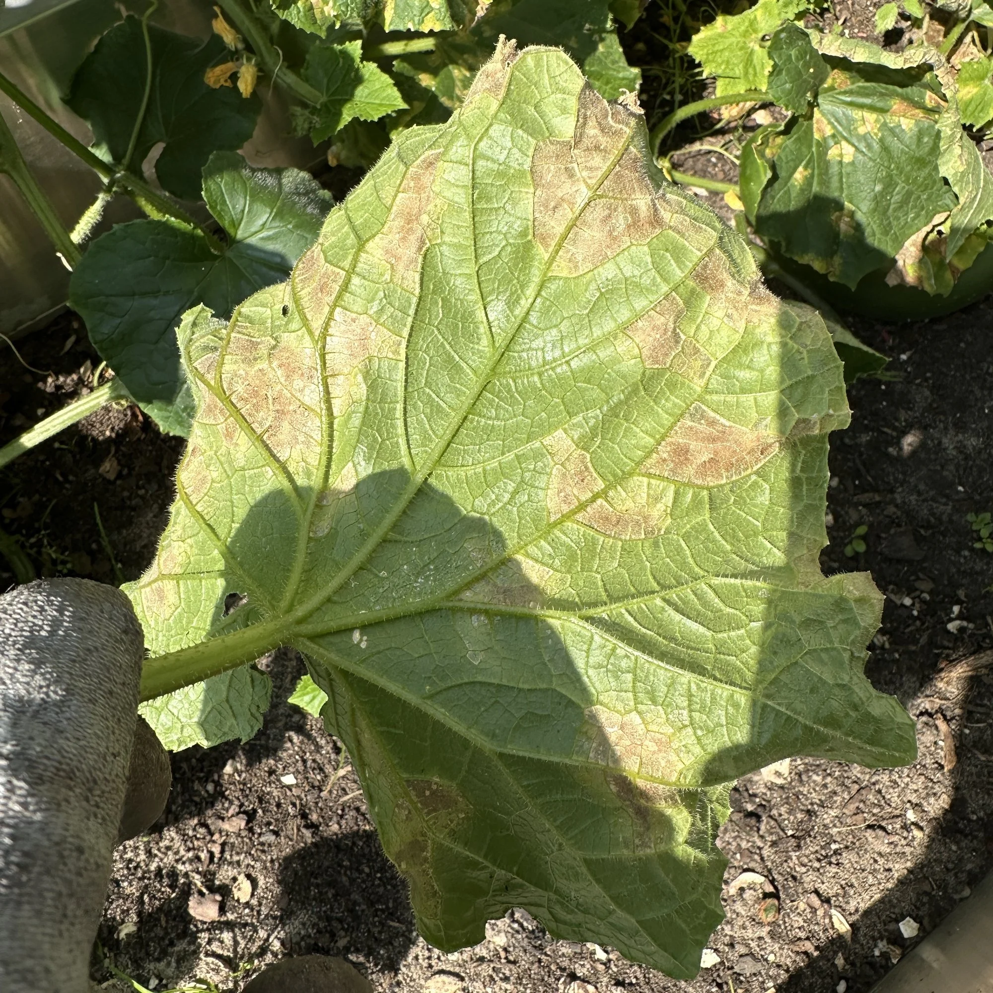 Meine Freiland-Gurken im Hochbeet tragen zur Zeit relativ gut, aber es gibt wieder diverse Probleme mit den Blättern. Erst hatte ich Gurkenwelke drin, jetzt das...siehe Bilder.
