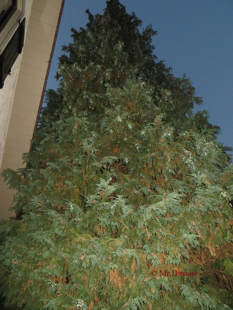 Heute habe ich auch festgestellt, dass mein Lebensbaum irgend etwas hat, der bekommt richtig braune Zweige und hat manchmal so flechten drauf.