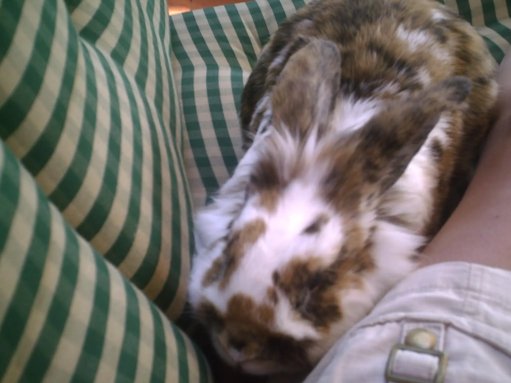 Murmel hatte sich vor kurzem einen Nerv eingeklemmt und konnte nicht mehr hoppeln. Er bekommt nun eine Schmerztherapie. Es geht ihm aber schon wieder viel besser :cool: