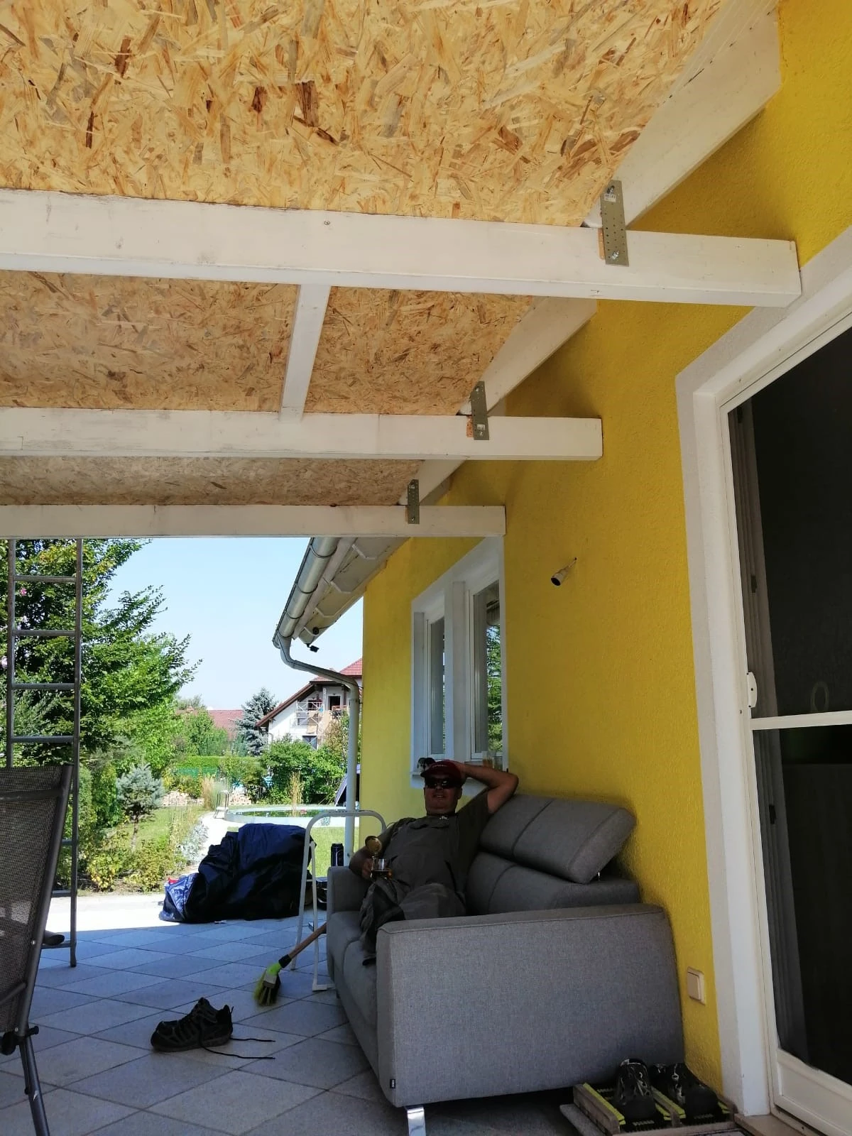 Da musste ich bei der Hitze am Samstag sogar noch eines hinterher schicken das nachsieht, wo das erste abgeblieben ist...der Terrassendach-Chef hat ein kühlendes Getränk in der Hand