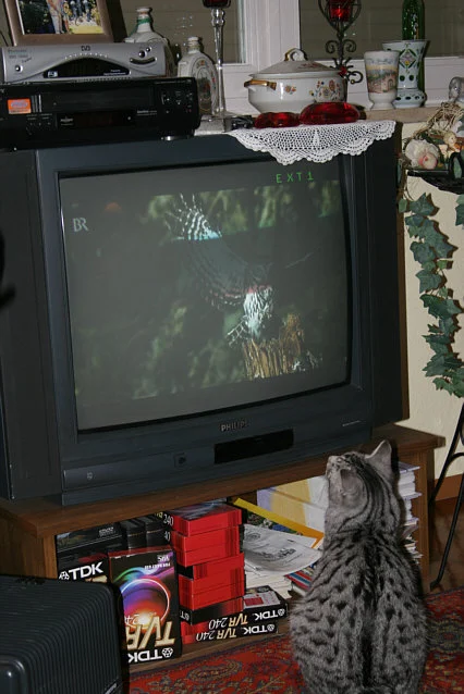 Gell, das dicke Eichhörnchen ist klasse? Freut mich, dass Leo seinen Spaß hatte, der Link war von mir im Kaminthread. Katze&ich waren auch begeistert, allerdings ließ nach guten 8 Minuten unser beider Aufmerksamkeit nach. Gestern abend beim Video mit der Maus ist sie immerhin schon 10 Minuten interessiert geblieben. Ja, und wenn die Vögel nach oben fliegen, schaut sie auch immer zur Zimmerdecke, ob die da jetzt irgendwo sind.