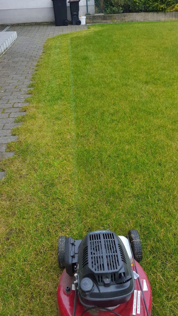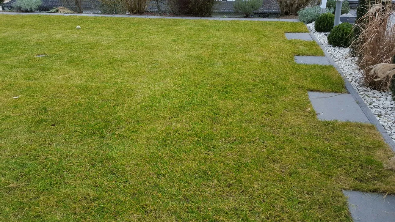 Die Rollrasen Firma meinte, in ein paar Jahren hat sich der Sand tiefer in den Boden gearbeitet, dann wird auch sein Rasenbild einheitlicher.