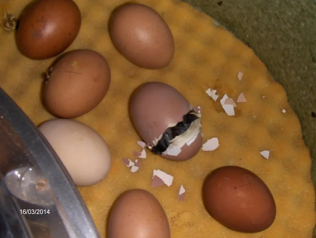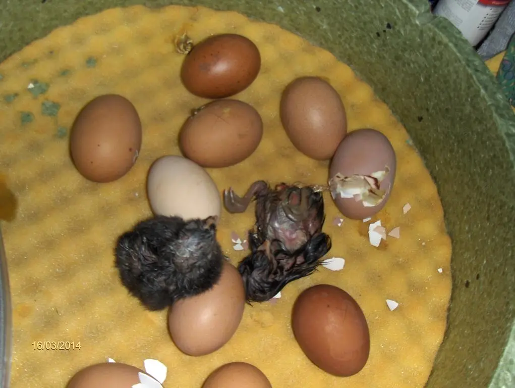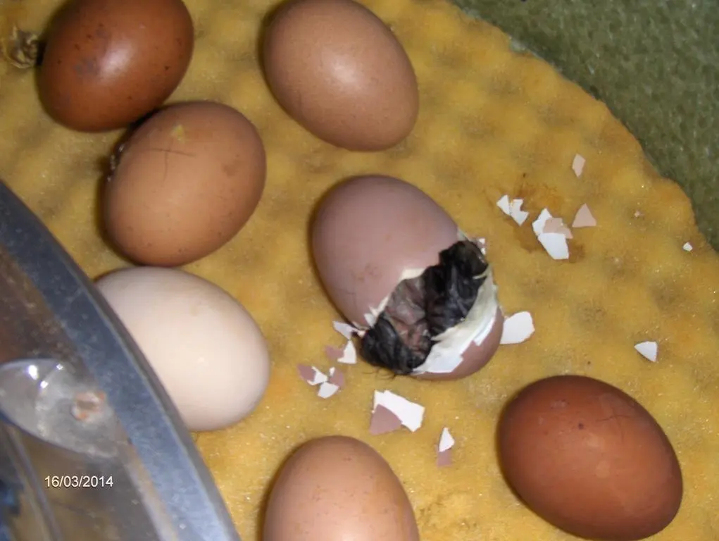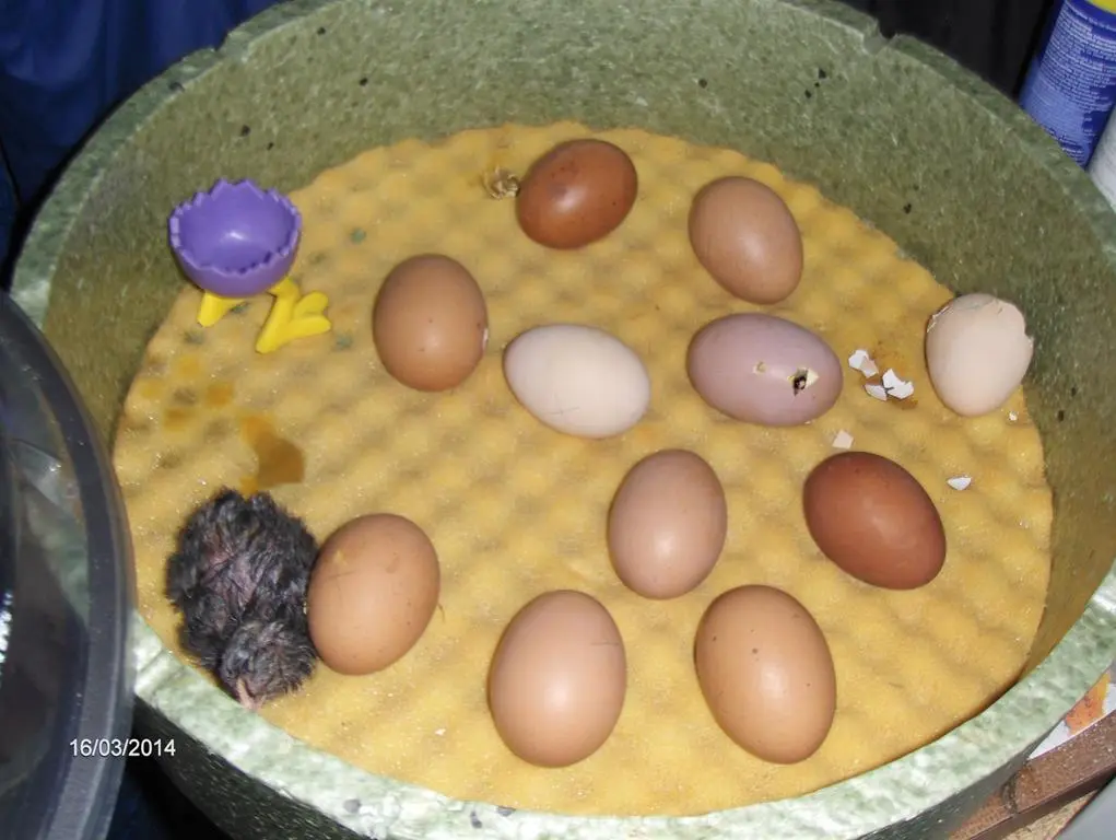Wir haben verschiedene Hühner und dieses Küken ist aus einem weissen Ei und die anderen angepickten sind aus einem dunkel braunen bis rötlichem Ei das heisst das sind Maraneier und da ist die Schale etwas dicker daher brauchen sie länger um zu schlüpfen das ist für das eine Küken jetzt bissel doof und darum bleibt es noch drinne und hört so auch die anderen Küken wenn sie piepsen:?