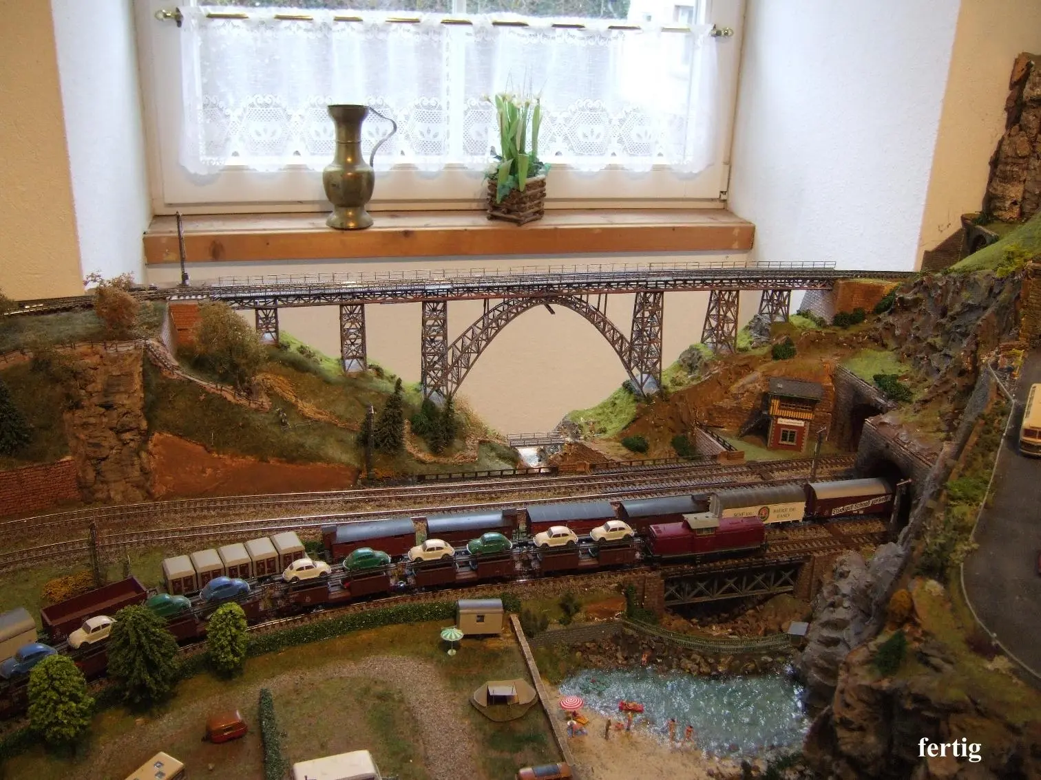 Ich hab sie gefunden. Die Anlage dazu hängt an der Wand, komme aber leider dort nicht hin, da Gattins mächtiger Bastelschrank davor steht. Im kommenden Jahr werde ich die Bahn aber reaktivieren.