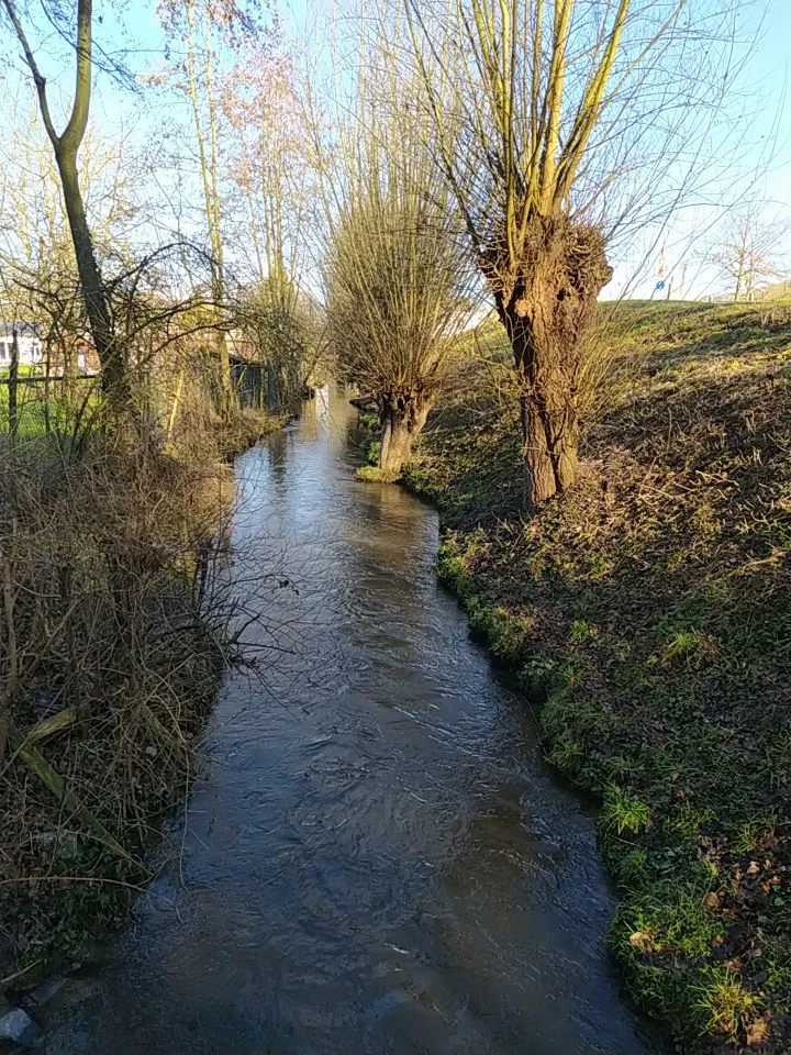 Wir stehen in der Niederlande und schauen auf der gegenüberliegenden Seite auf Belgien.