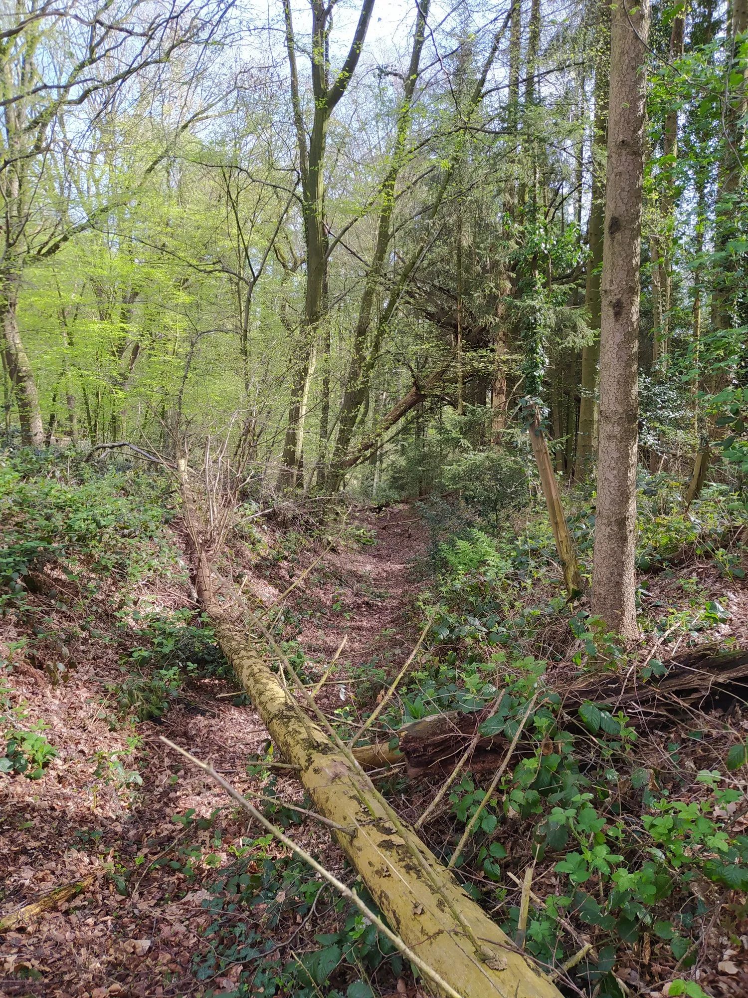 Wir sind durch einen sehr wilden Wald gelaufen, Bäume und Äste lagen Kreuz und quer.
