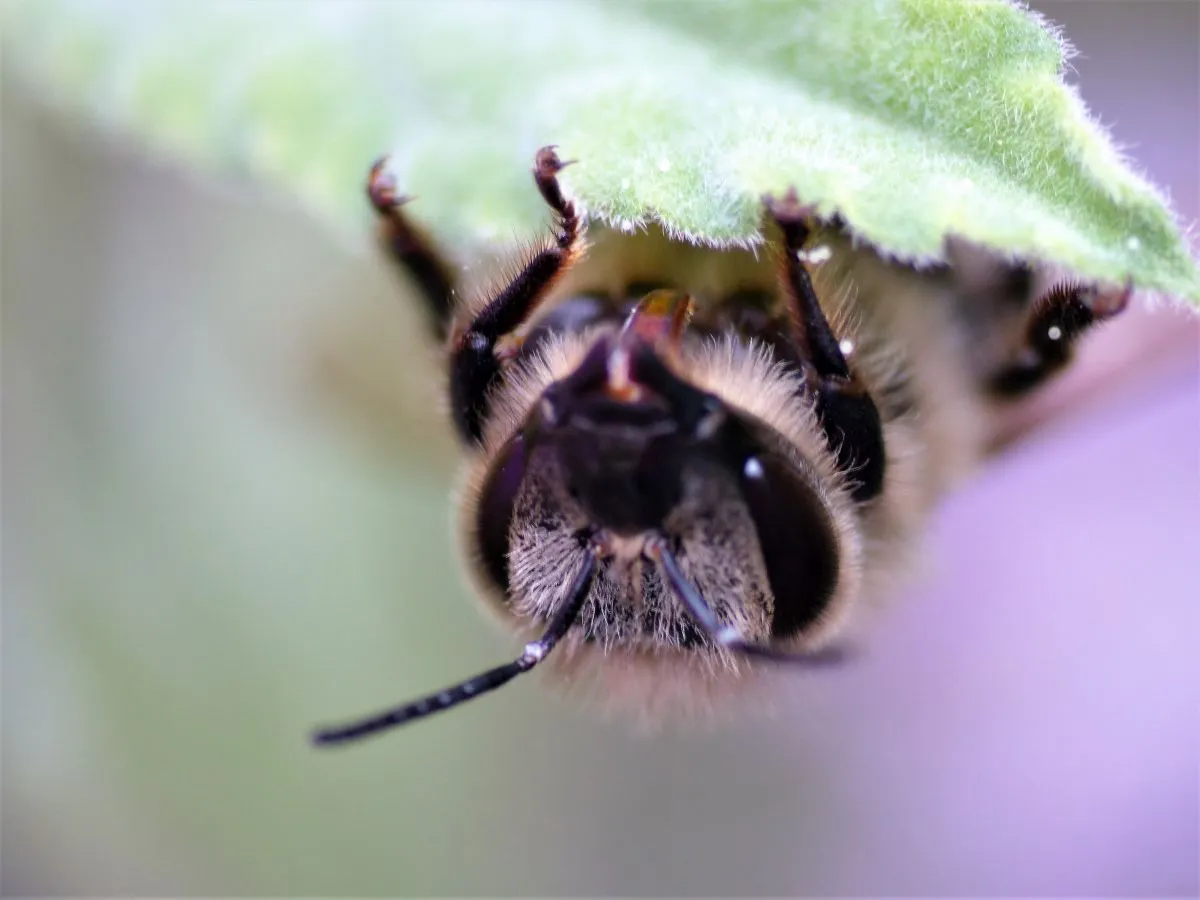 Das Bienchen ist leider nicht so scharf. Das schlief anscheinend noch unter dem Blatt und ich wollte ihm nicht so nah auf