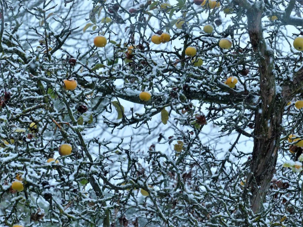 Äpfel mit Schnee.