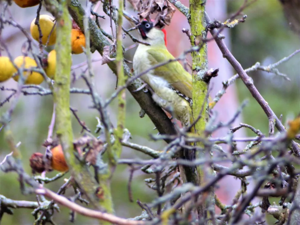 Ich hatte Spechtbesuch. Mein Hausspecht wohnt ja quasi hier. Aber der grüne mit dem tollen roten Punkstreifen auf dem Kopf ist neu und kommt jetzt hoffentlich öfter. :lachend:Leider wollte der sich VIP-mäßig nicht so ohne weiteres knipsen lassen.