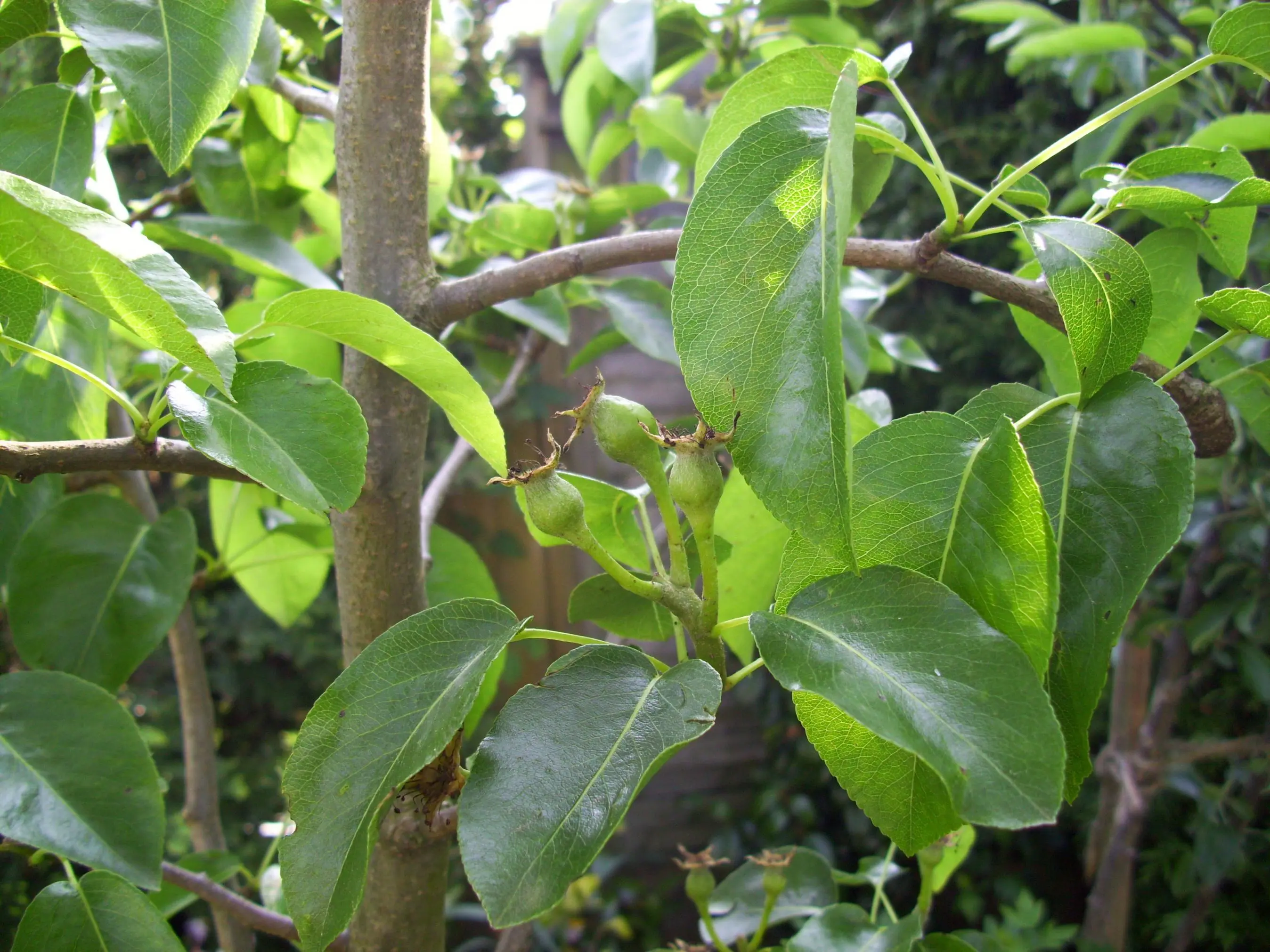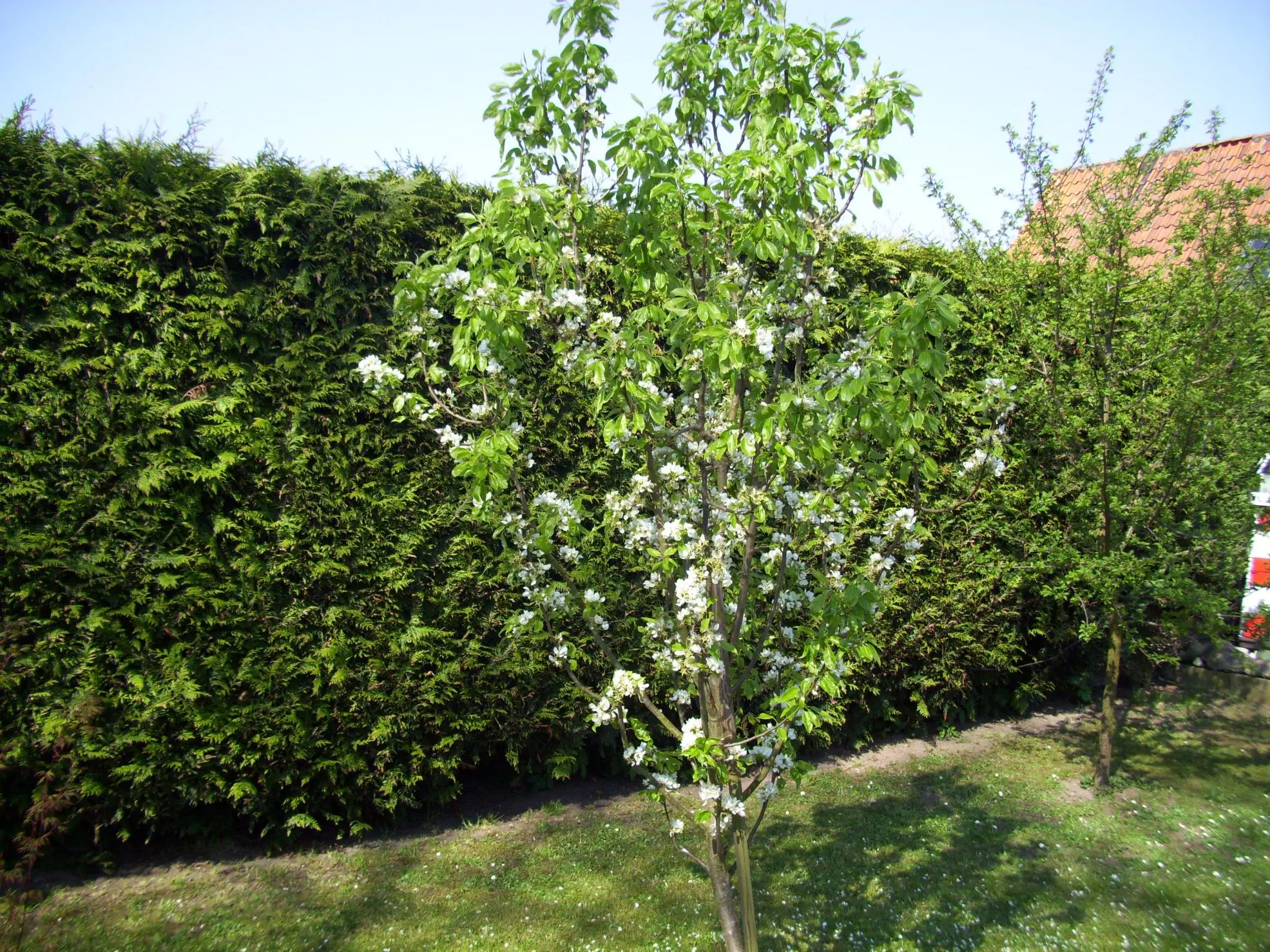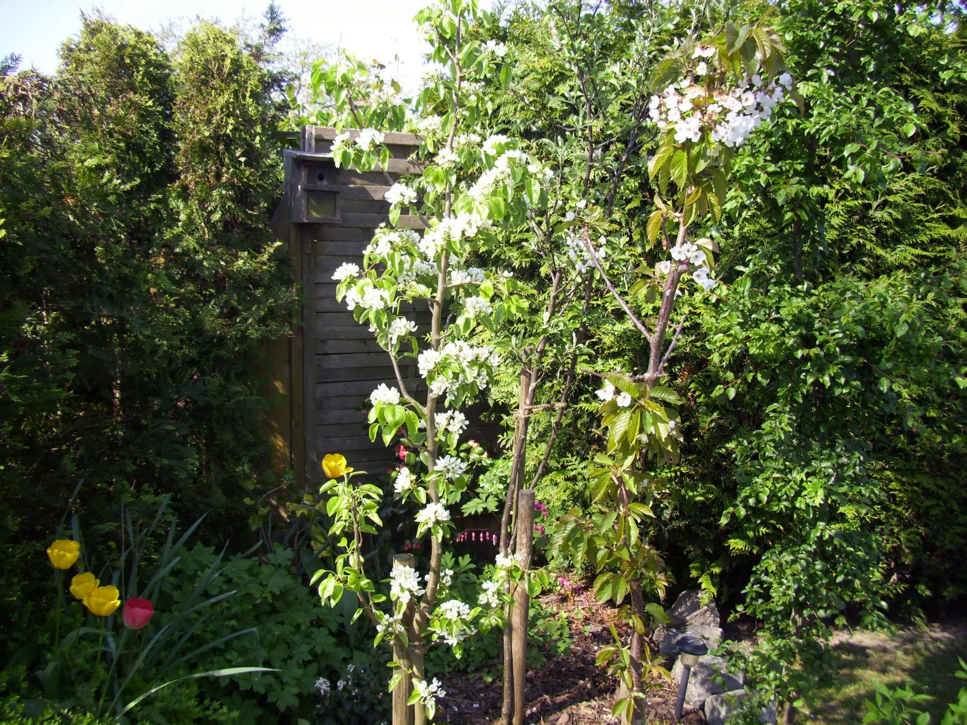 Nur die freistehende Birne nicht, da sind so ziemlich alle Blüten braun geworden.