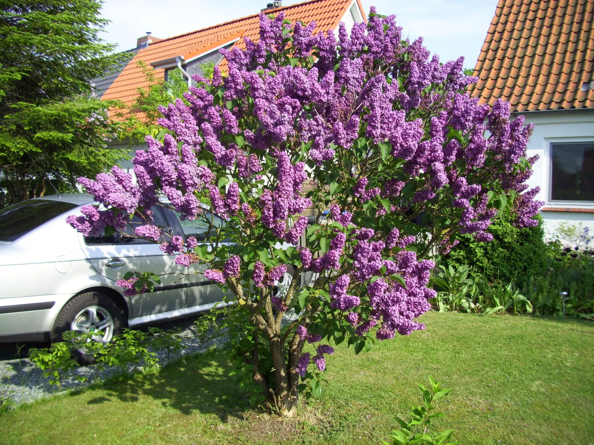 Der Flieder ist, obwohl er letzten Jahr noch einen Rückschnitt erleiden mußte, wieder in voller Pracht.