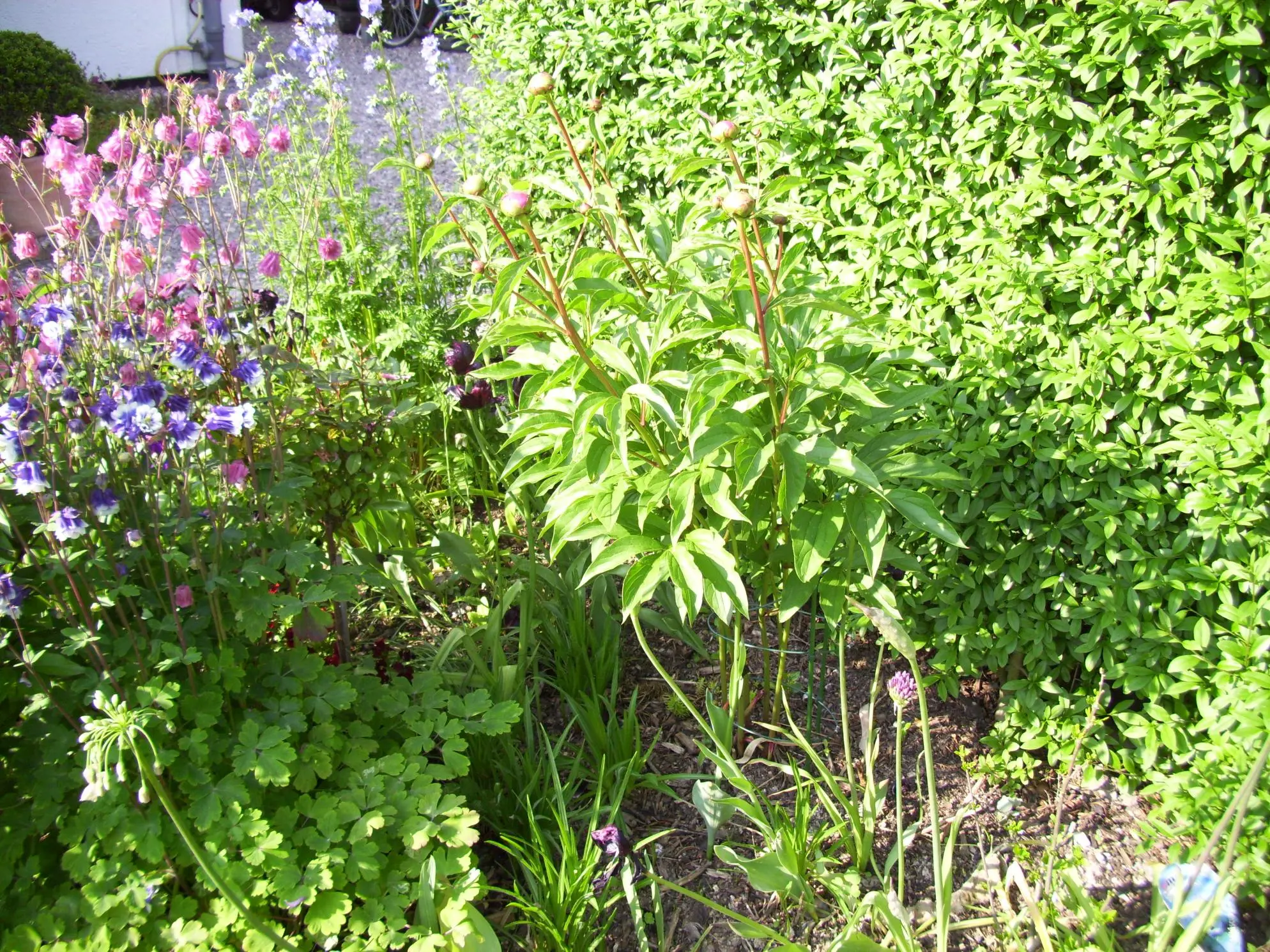 Meine beiden Pfingsrosen, damals vom Penny im Pappkarton, werden von Jahr zu Jahr größer.
