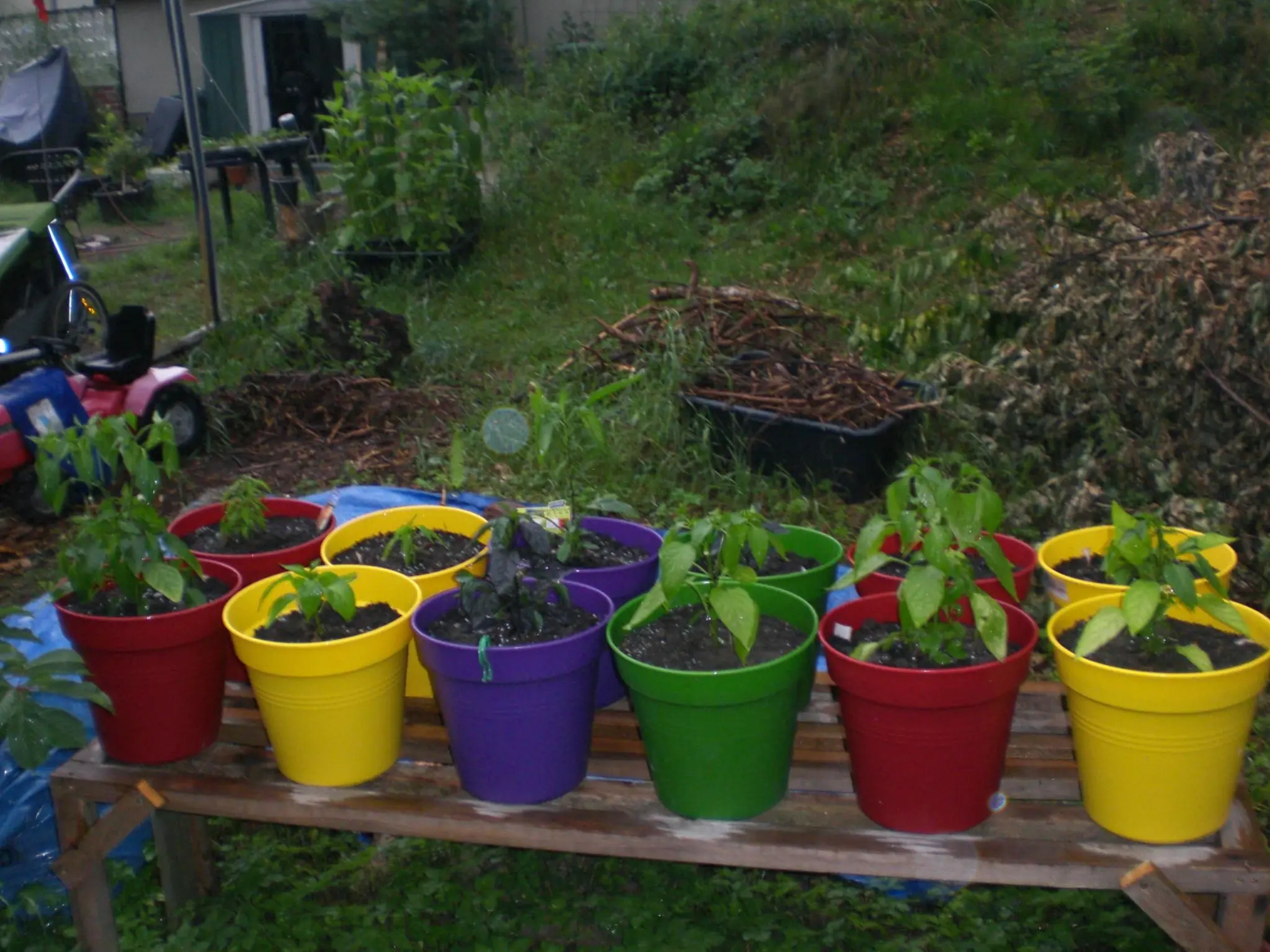 Im Vergleich dazu ein Kübel-Paprika die ich extra reingestellt habe, die stehen sonst im Freien....aber da wären sie wohl ersoffen ;-(