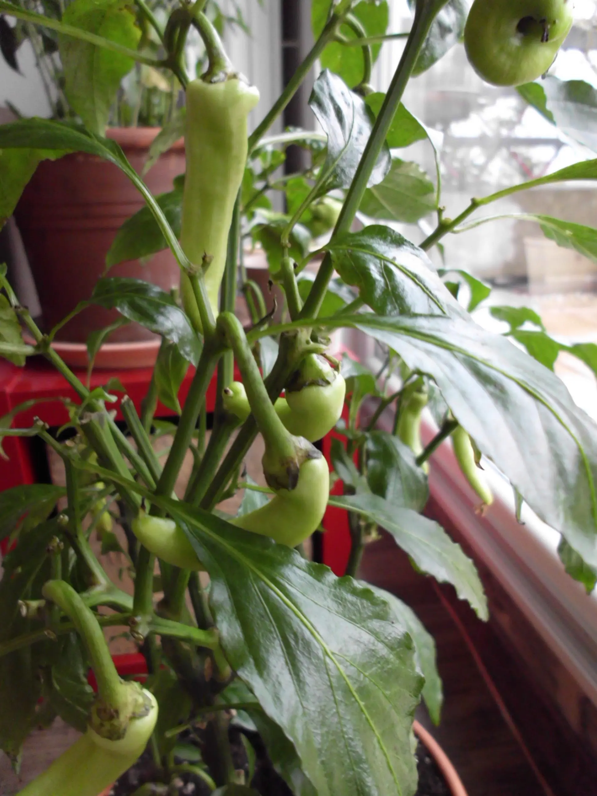 Aber nun habe ich wieder eine Frage. Noch in Sorge das meine Chilis und meine Paprika "Sweet Banana" nichts mehr wird, haben sie nach dem Reinholen in die Wohnung doch nocht üppig Früchter hervorgebracht. Die Chilis sind wunderbar, schön scharf und teilweise recht aromatisch.