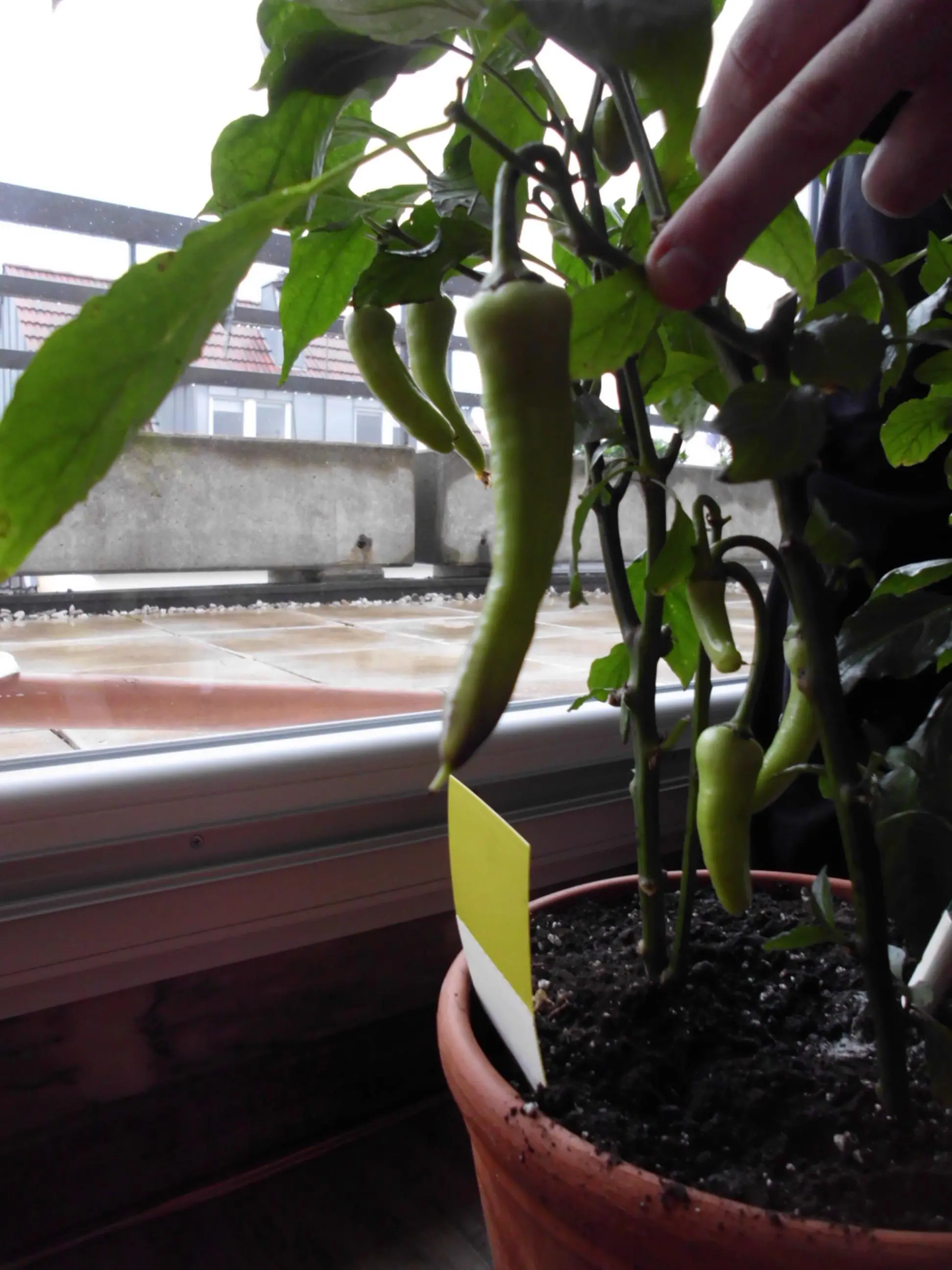 Die Chilis ernten wir einmal die Woche, die sind super!
