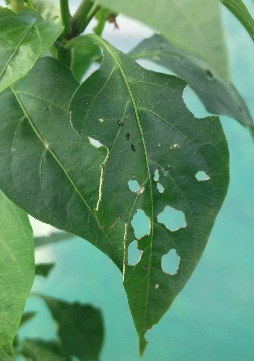 Er frisst mir alles ab und ich finde schwarze Hinterlassenschaften unter oder auf den Blättern.