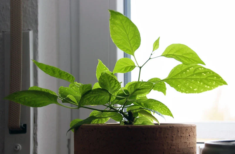 • Meine überwinterte Chilipflanze hat sich ganz toll entwickelt, viel besser als im letzten Jahr auf dem Balkon. Allerdings musste ich nun leider "zerfressene" Blätter entdecken. Bislang scheint ihr das nichts auszumachen, sie bildet auch weiter Triebe und alles. Aber das hat ja eine Ursache und die würde ich gerne finden und vernichten. Nur welche kommt dafür in Frage?
