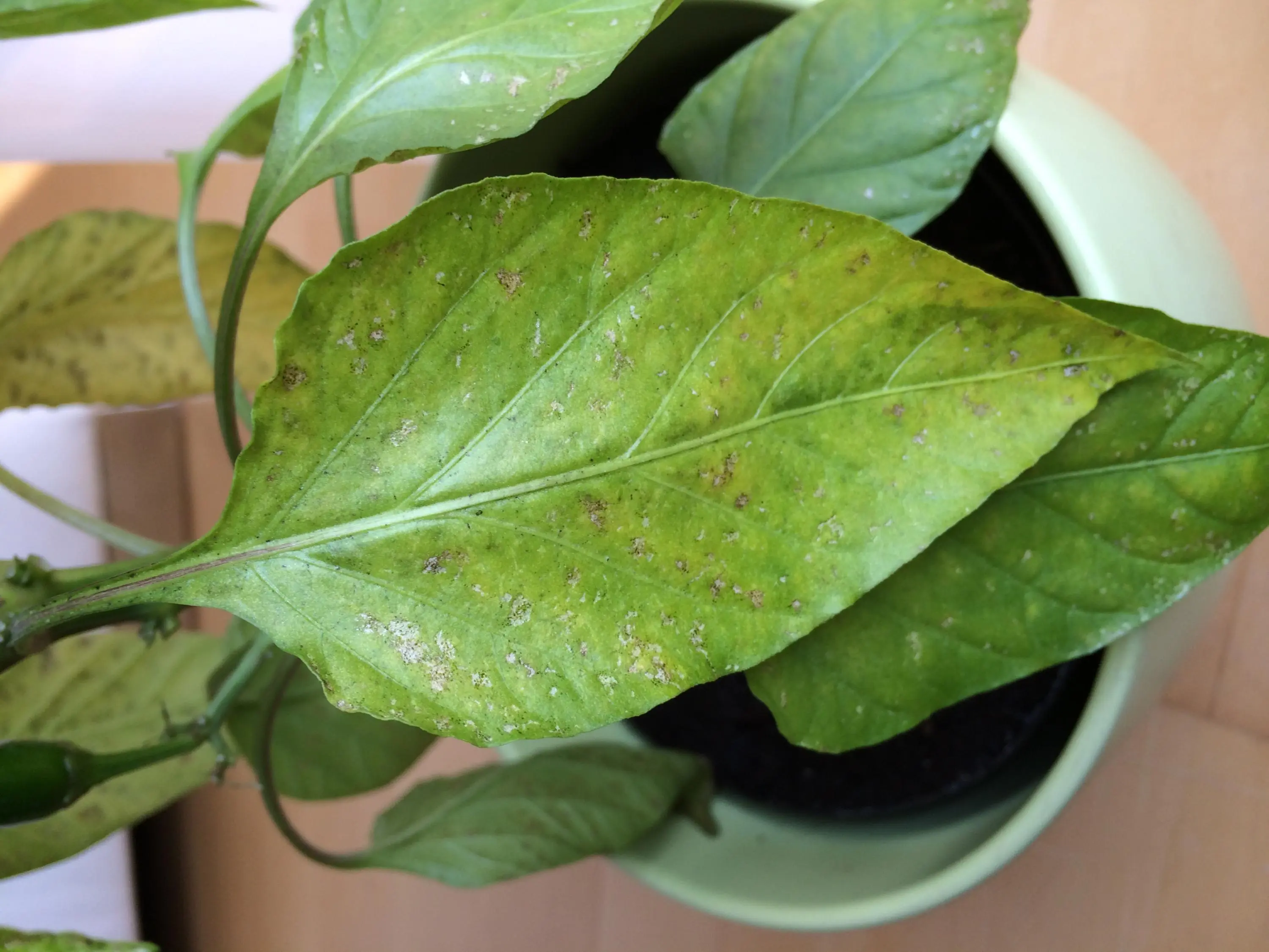 Ich hab an meinen Chili und Paprika Pflanzen Tierchen entdeckt. Die sind ca.1-1,5 mm groß, länglich, weiß bis bräunlich, scheinbar ohne Beine und krabbeln auf der Blattunterseite.