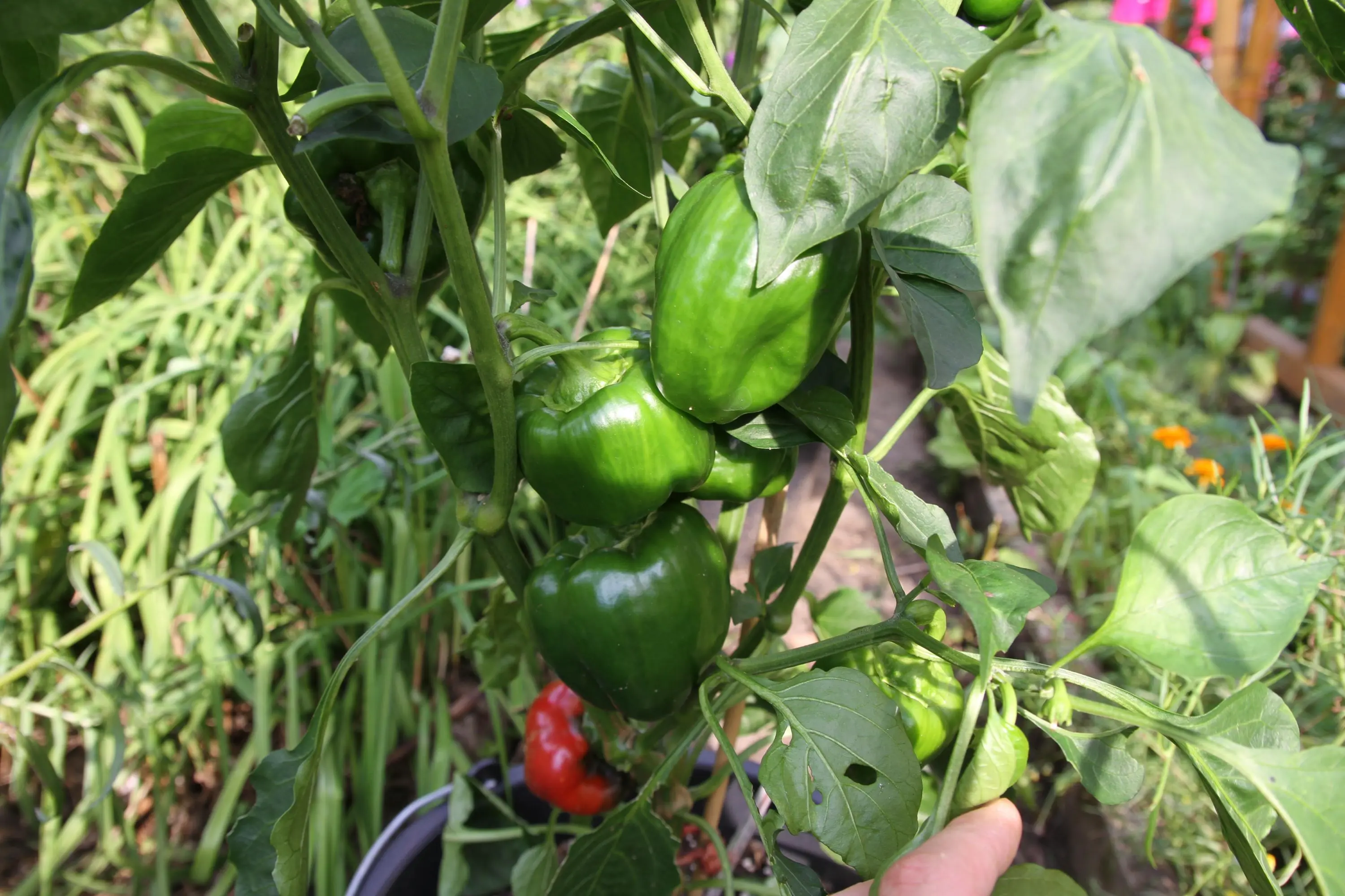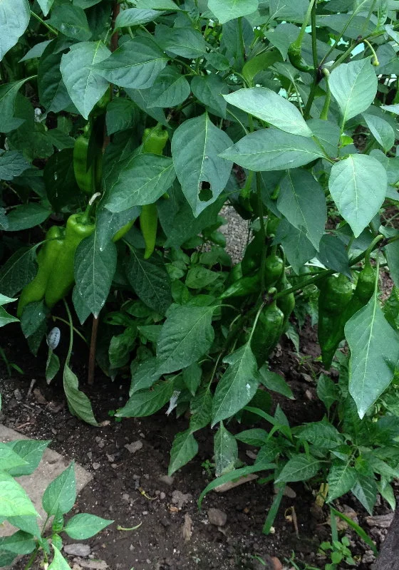 Gestern habe ich meine kleinen gelben Paprikas, einige Anchos und einige Almapaprikas mit Speck, Zwiebeln und Tomaten als Hauptgericht zu Reis gegessen.