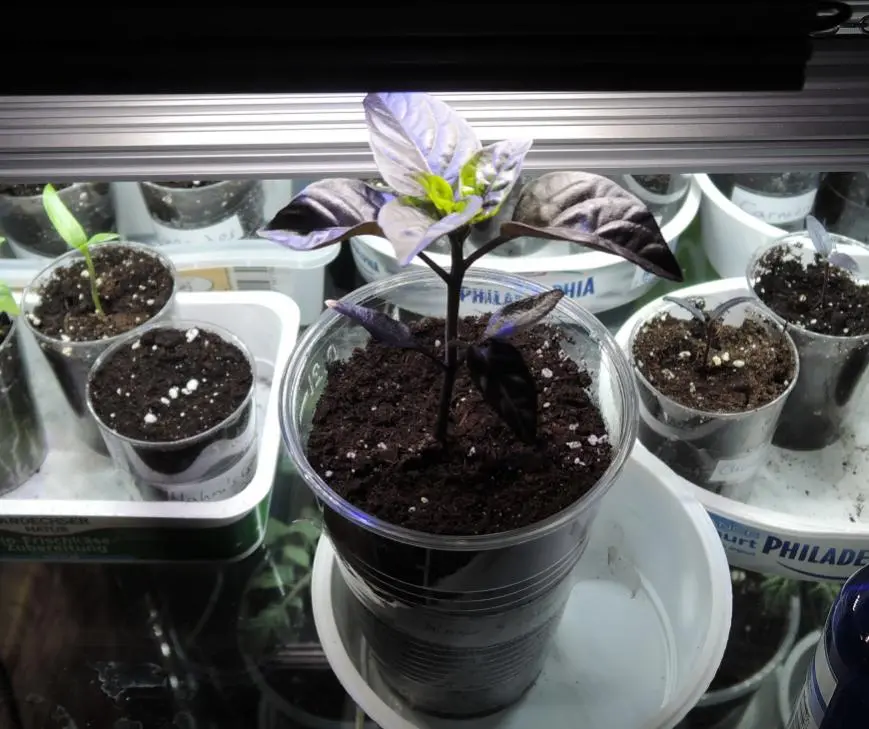... die Pflanze ist jetzt so 3,5 Wochen alt, und daneben sieht man ihre kleinen "Geschwister" - noch zwei Chinese-5-Colour (erst wenige Tage alt) und die Early Jalapeno (ebenfalls vor wenigen Tagen geschlüpft)