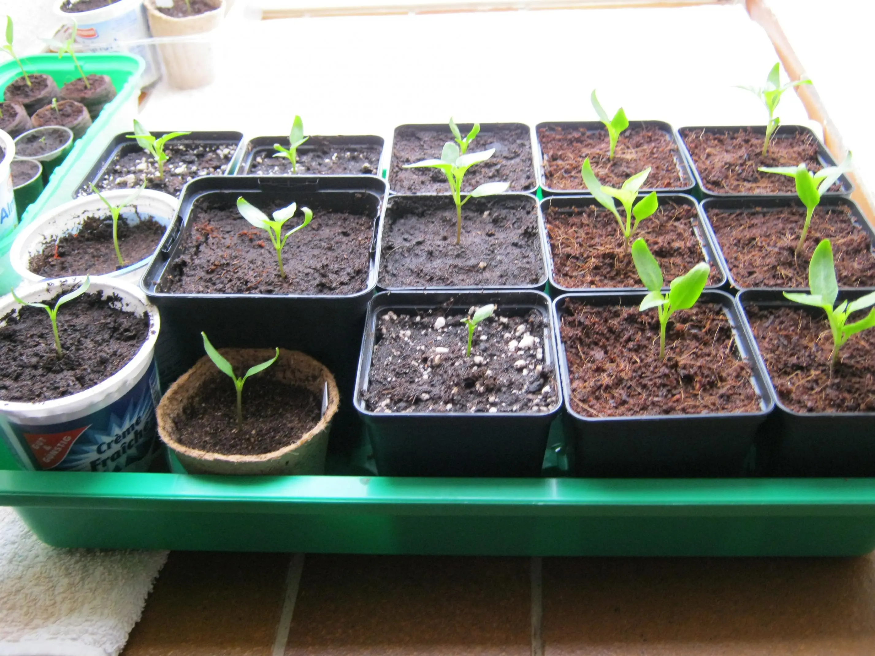 Mir machen inzwischen meine Paprikazöglinge ein wenig Sorgen. Fast alle (durch alle Sorten und sowohl die in Kokos als auch in Aussaaterde gesäten) hatten zunächst helle Keimblattspitzen und mit zunehmender Zeit werden die Spitzen dunkel und vergammeln. Mal mehr mal weniger ausgeprägt. Außerdem rollen sie die Keimblattspitzen immer nach oben auf. Die ersten "echten" Blätter sehen aber (bis auf wenige Ausnahmen, wo die Blätter etwas ungleichmäßig sind) sehr gut aus. Habe schon versucht weniger zu gießen, weil ich dazu neige zuviel zu gießen, aber bisher keine Veränderung. Hatte das von Euch schon jemand und weiß woran das liegen könnte?