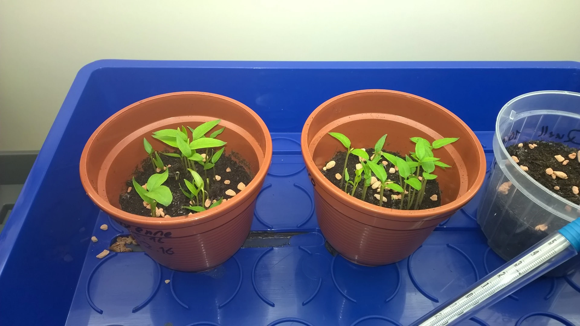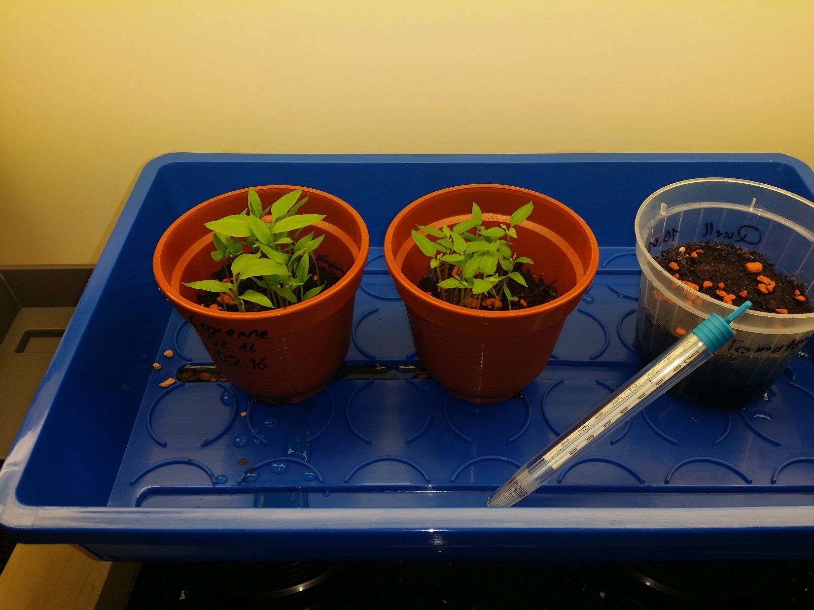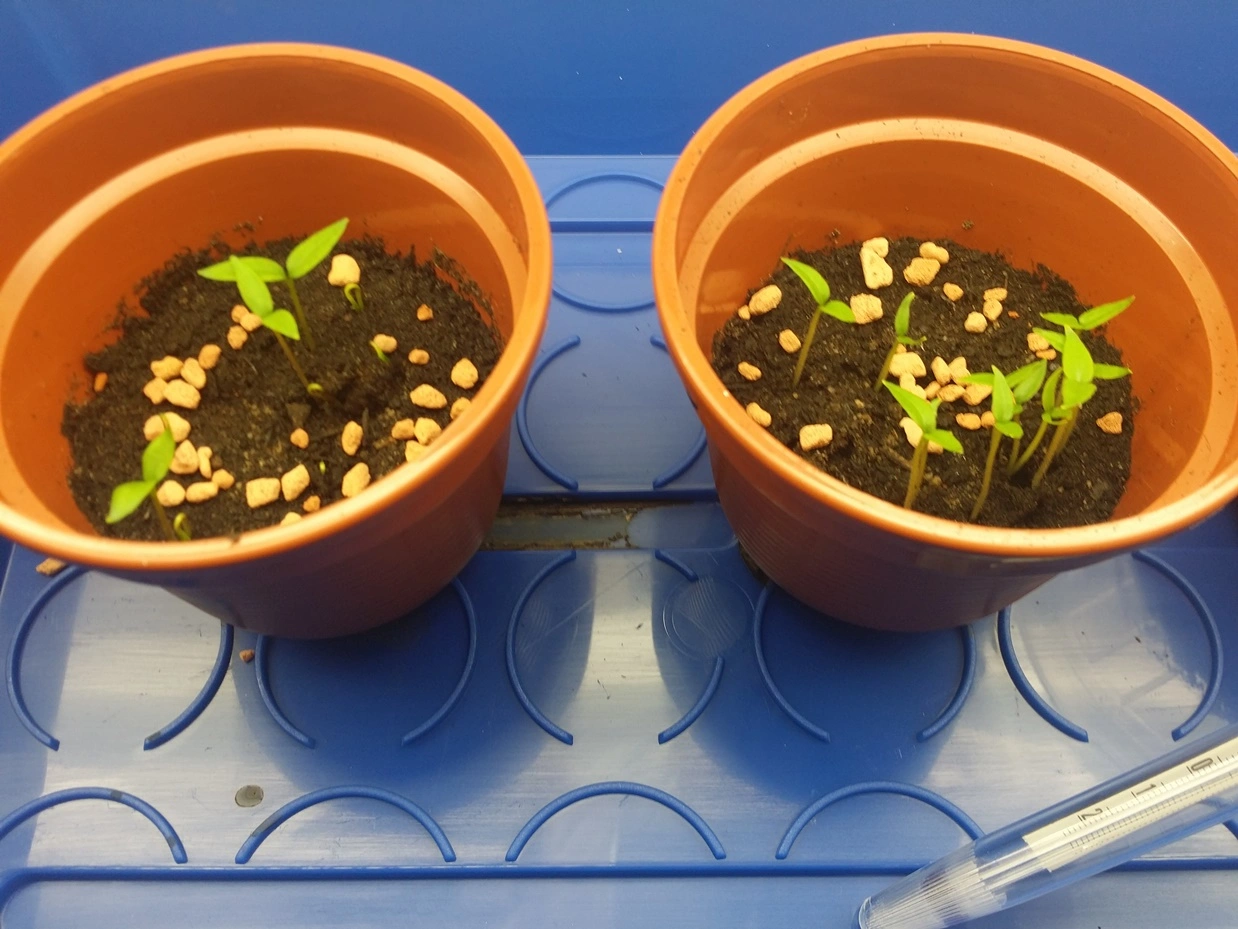 1x unbekannte Supermarkt Paprika, spitz, grün und scharf. Diese ist soweit die keimfreudigste mit dem stärksten Wachstum. Wahrscheinlich eine F1, bin schon sehr gespannt was aus diesem Experiment so wird