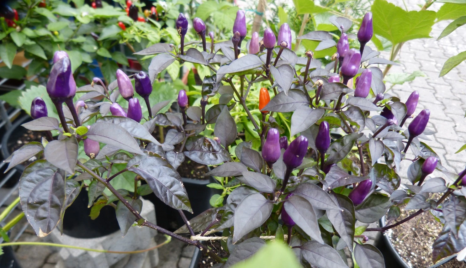 Sorte unbekannt, reift aber dunkelrot ab und ist recht mild. Ideal zum Grillen oder Salate:
