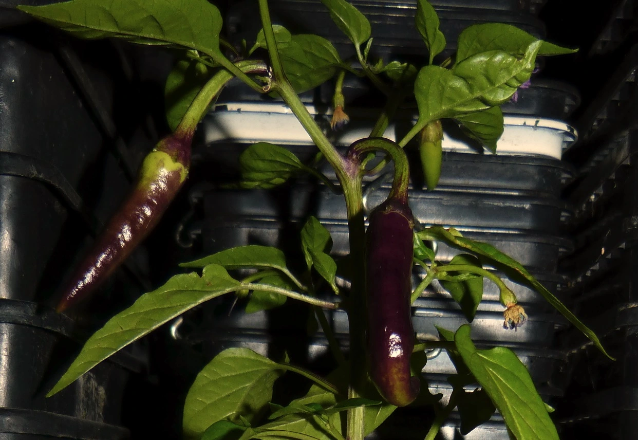 Und das da sollte eigentlich eine Aji Guyano werden, allerdings sieht sie mir aktuell mehr nach Joes Long aus, die ich auch ausgesät hatte, die aber nicht kam. Es bleibt spannend.