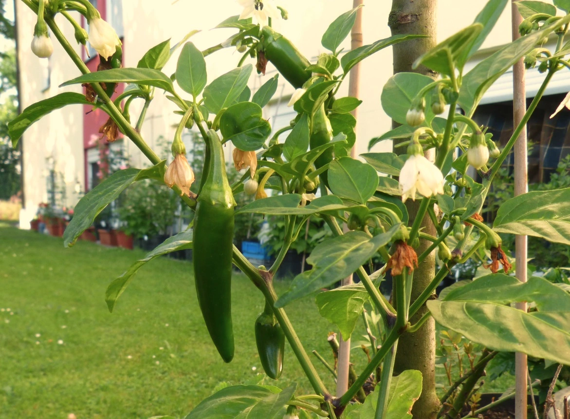 Meine Gießhilfe während des Urlaubs hat es geschafft, dass endlich mal Rocotos wachsen, bei mir fielen sie nach der Blüte immer ab, da war ich wohl zu sparsam mit dem Wasser: