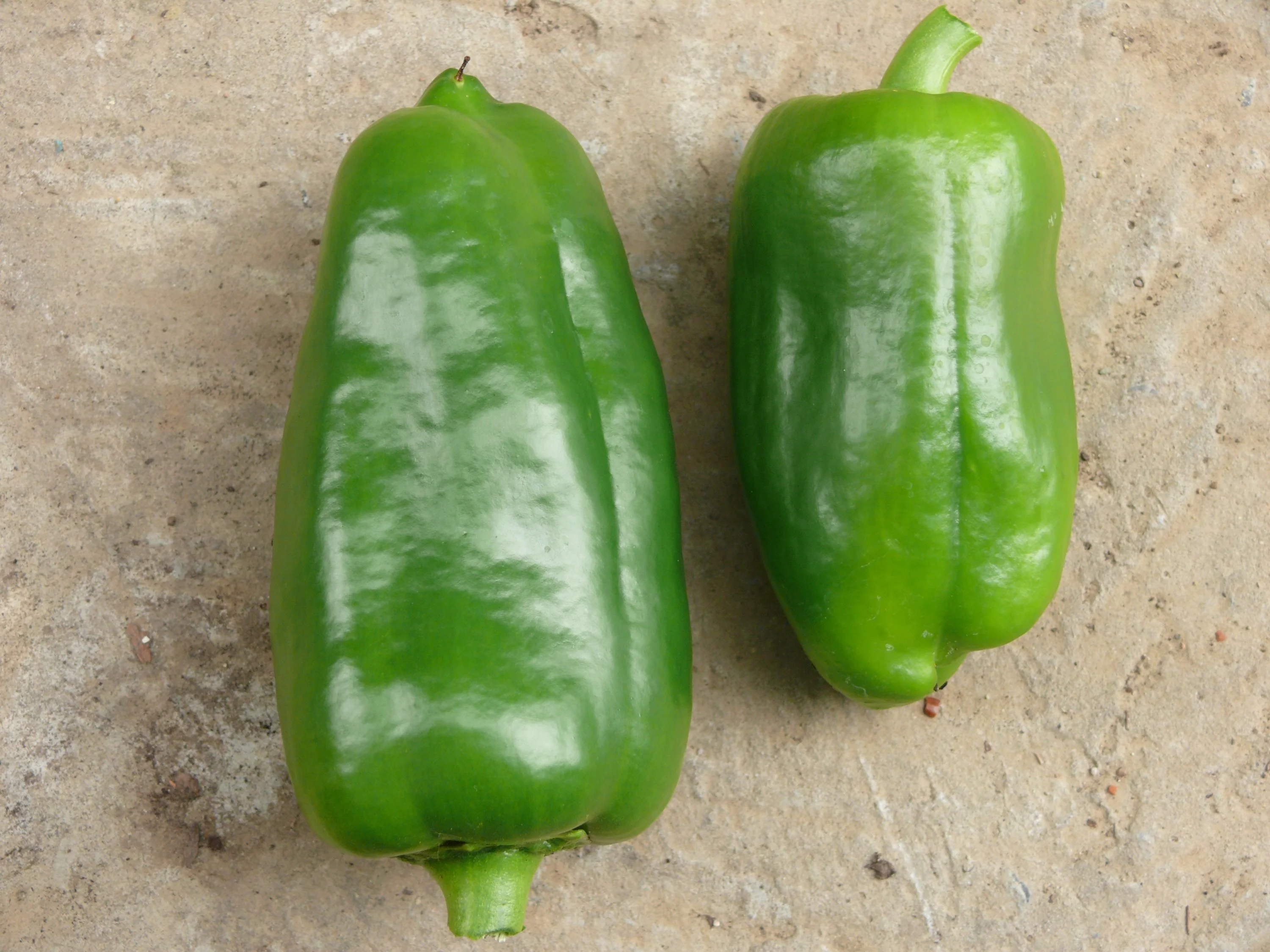 Meine erste Ernte. Leider wurden beide nicht so wie Mama, wenn sie auch mit ihrer Mischung aus fruchtig und leicht scharf durchaus lecker sind. Die Farbe wirkt falsch: sie sind eigentlich pfirsichfarben.