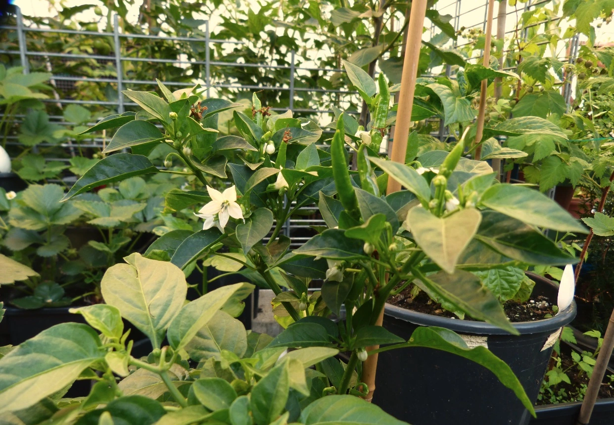 Meine Paprika und Chilies sind noch grün, machen sich aber ganz gut.