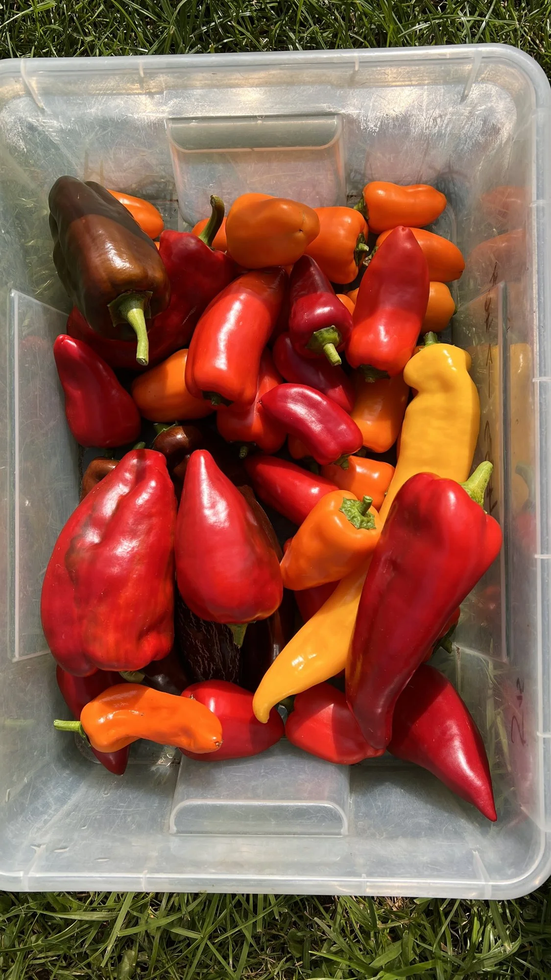 Bei den kleineren Sorten kann ich ca. 50 Tage nach der Blüte reife Früchte ernten: das wäre dann Mitte Oktober. Die technische Reife haben sie vermutlich schon Anfang Oktober und könnten dann im Haus noch nachreifen oder man kann die unreifen Früchten auch für Bratpaprika verwenden.