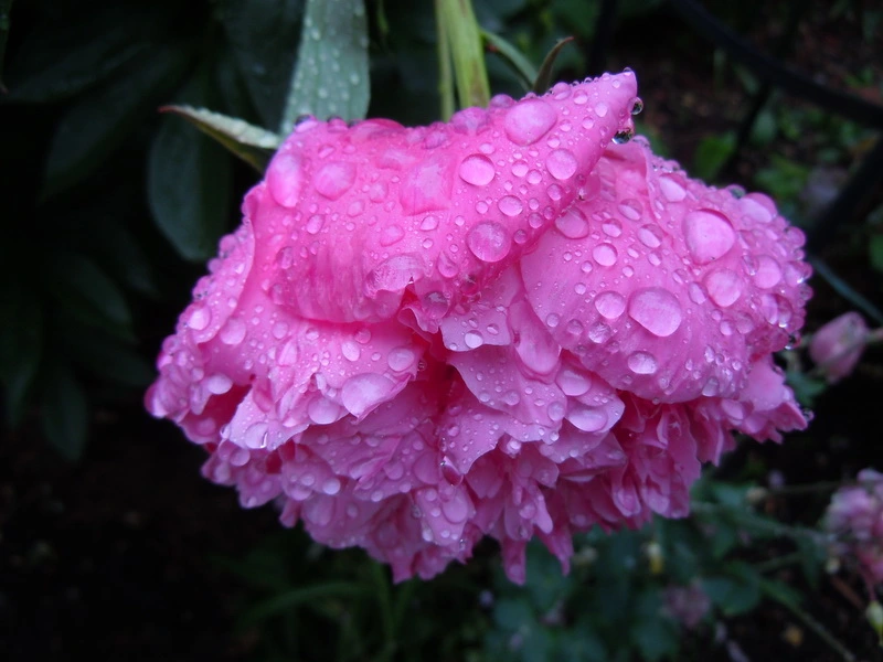Nun ja, die Pfingstrosen haben schönen Klitzerschmuck erhalten.