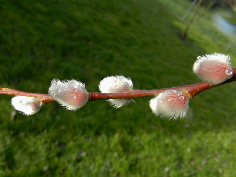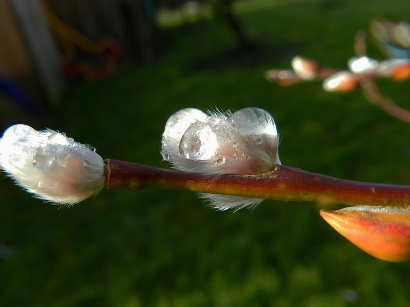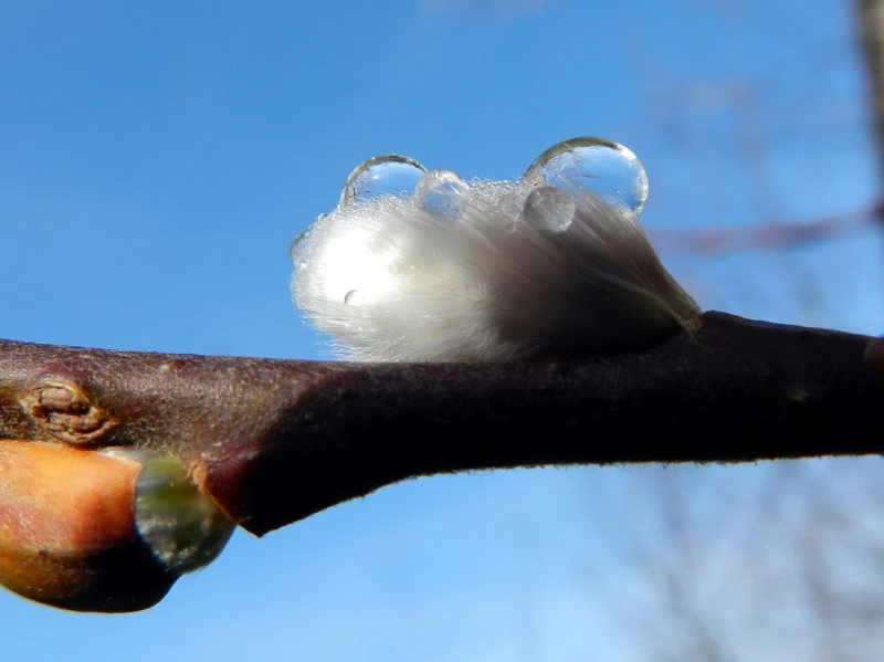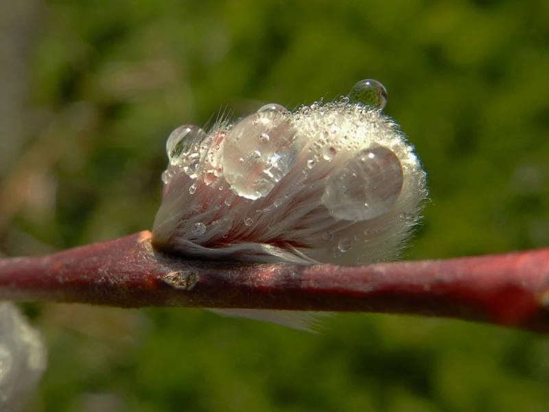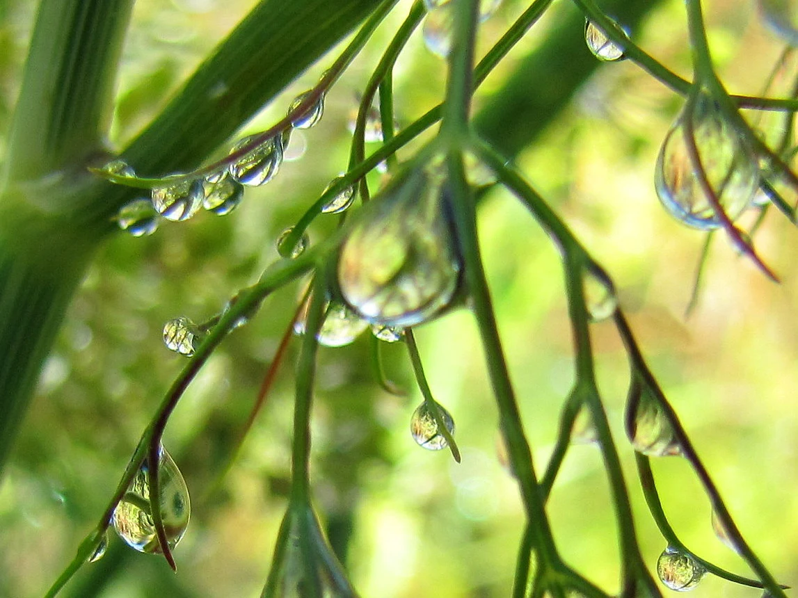 Überall waren, zum Teil noch gefrorene Tautropfen, in denen sich die Sonnenstrahlen spiegelten.