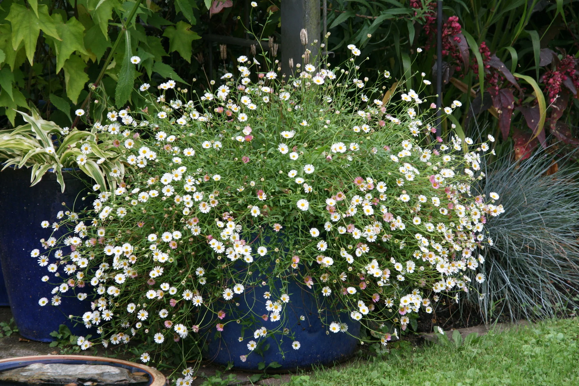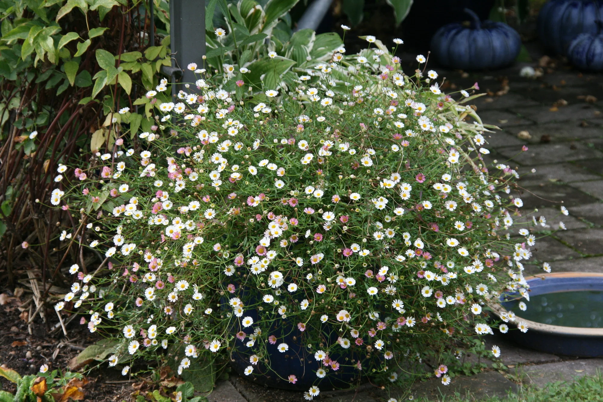 Ich habe einen Anbieter entdeckt, bei dem ich mir eine einheimische Felsenbirne geholt habe, dazu ein paar einheimische, schattenverträgliche Blumen, die üblicherweise gar nicht oder nur als Zuchtformen angeboten werden. Diverse Allium- und Tulpenzwiebeln, sehr früh blühende Narzissen, Krokusse und Hundszahn habe ich schon Ende Juli bestellt. Ich hoffe auf einen freundlichen Oktober, damit ich das alles in die Erde bringen kann, denn ich kann pro Tag nicht viel machen, und ich habe mit dem Gedanken „wer weiß, ob es nächstes Jahr noch geht“ so viel bestellt, wie ich unterbringen kann. Finanziell ist es wenigstens kein Problem dank Erbschaft – meine Mutter ist voriges Jahr nach der 2. Gen-Spritze gestorben.