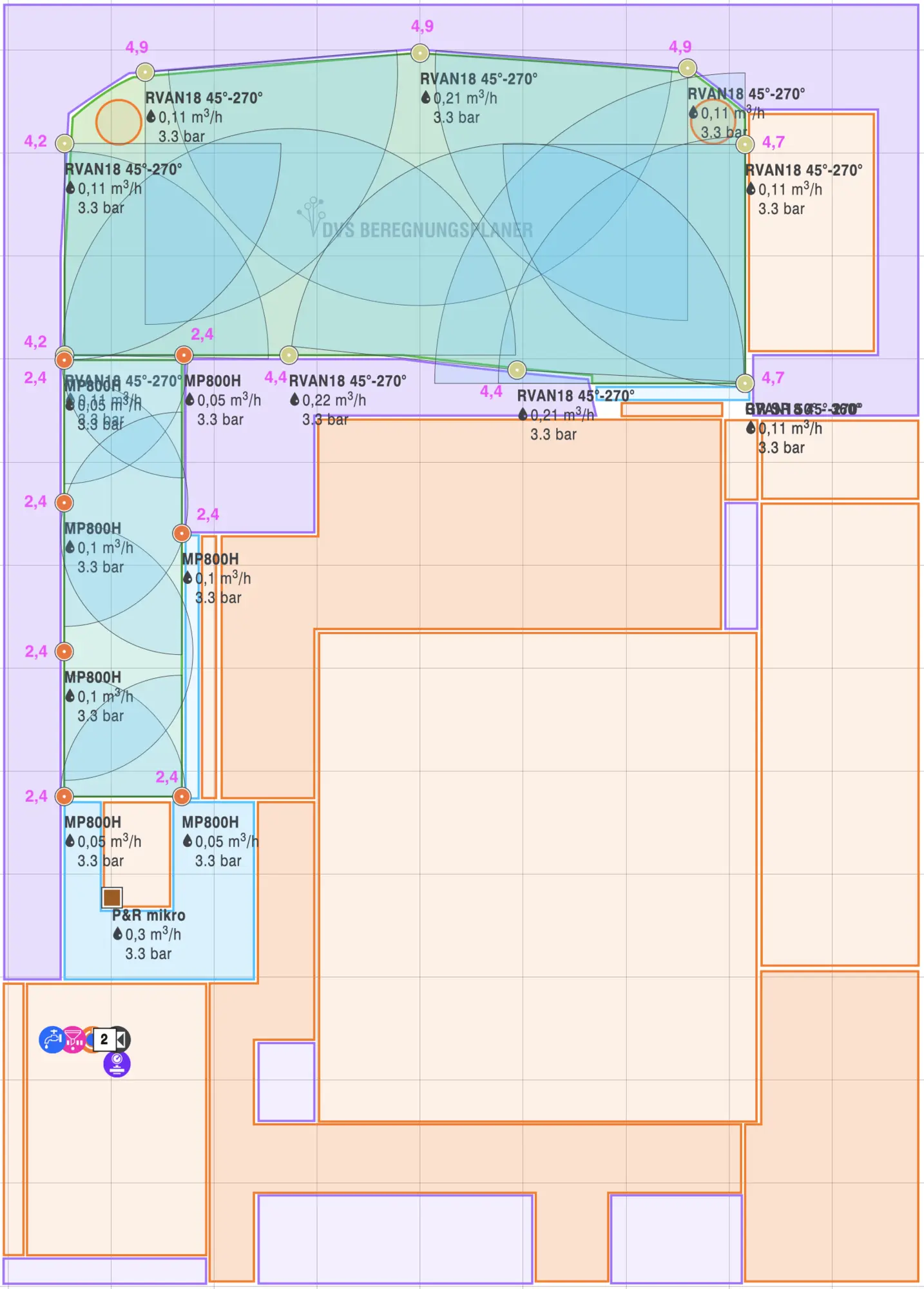 - Wasserqualität ist kalkhaltig ggf. auch für die einzusetzenden Getriebe-/Rotationsregner und Düsen relevant