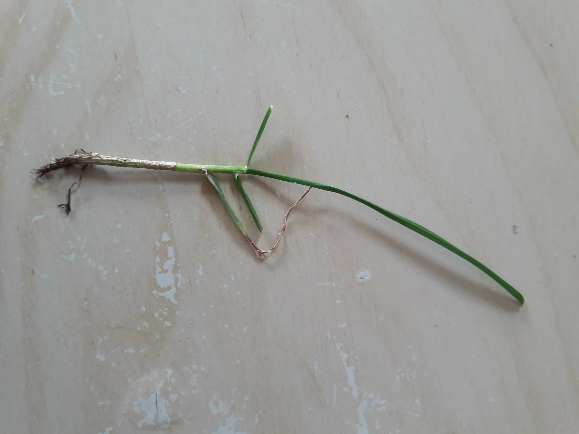 Hab mal einen Halm rausgezogen und fotografiert. Ließ sich nicht so leicht rausrupfen, war noch gut im Boden verankert die Wurzel. Viele sehen jedoch noch "trockener" aus unten rum, so wie auf den Bildern zu sehen.