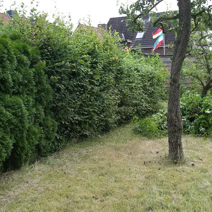 2. Was ist mit der Hecke entlang der südlichen Grundstücksgrenze? Auch Hainbuche? Muss die auch gekürzt werden?