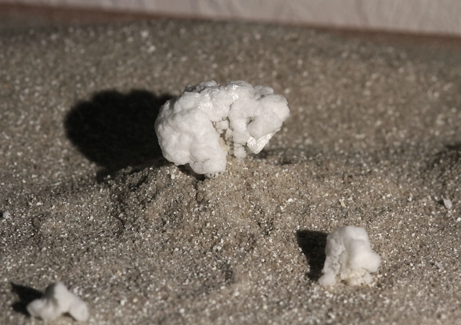 Die wasserfreien Kristalle haben orthorhombische Symmetrie.[2] Sie sind farblos und durchsichtig, sehr hart und äußerst stabil an der Luft.