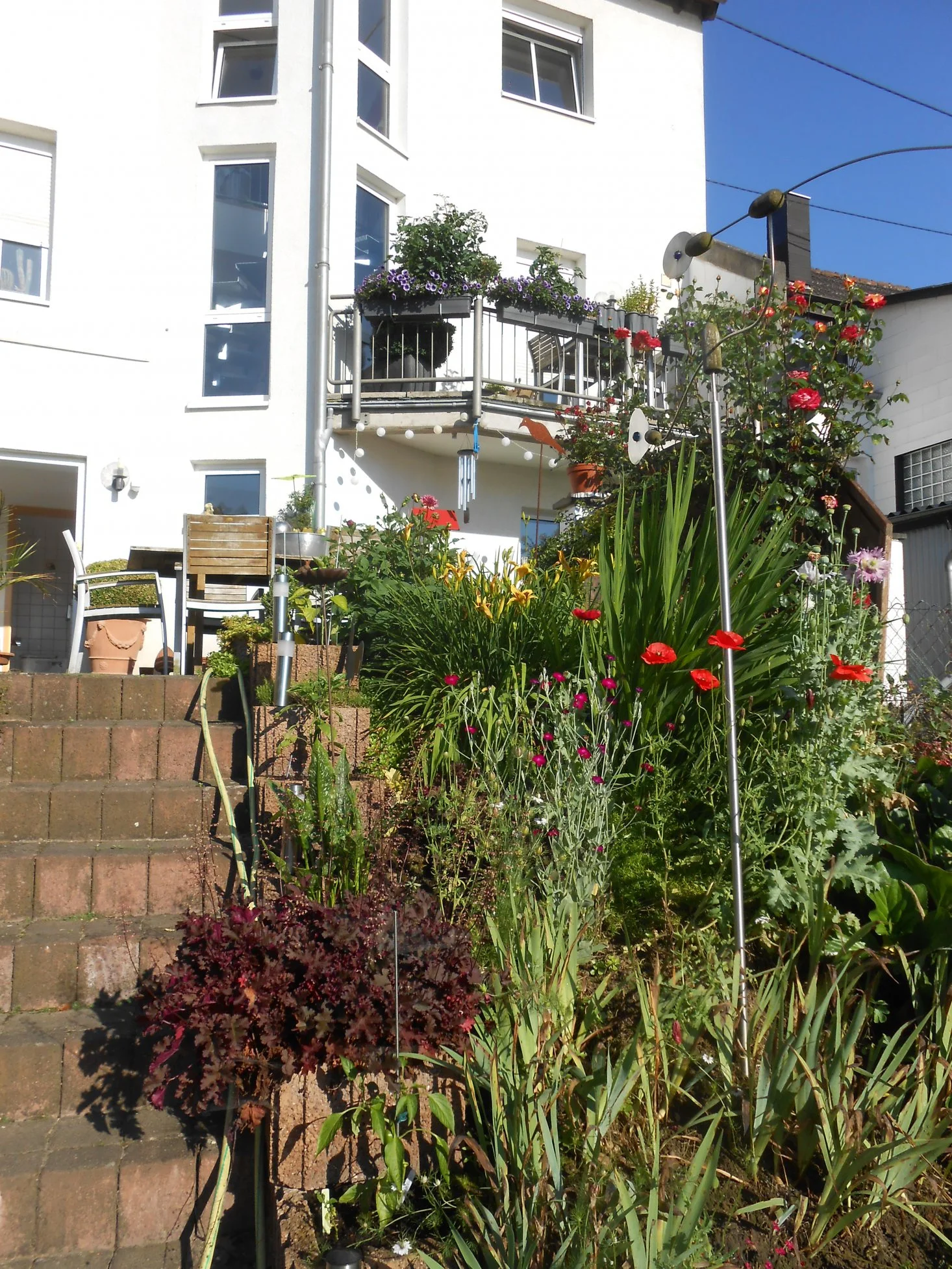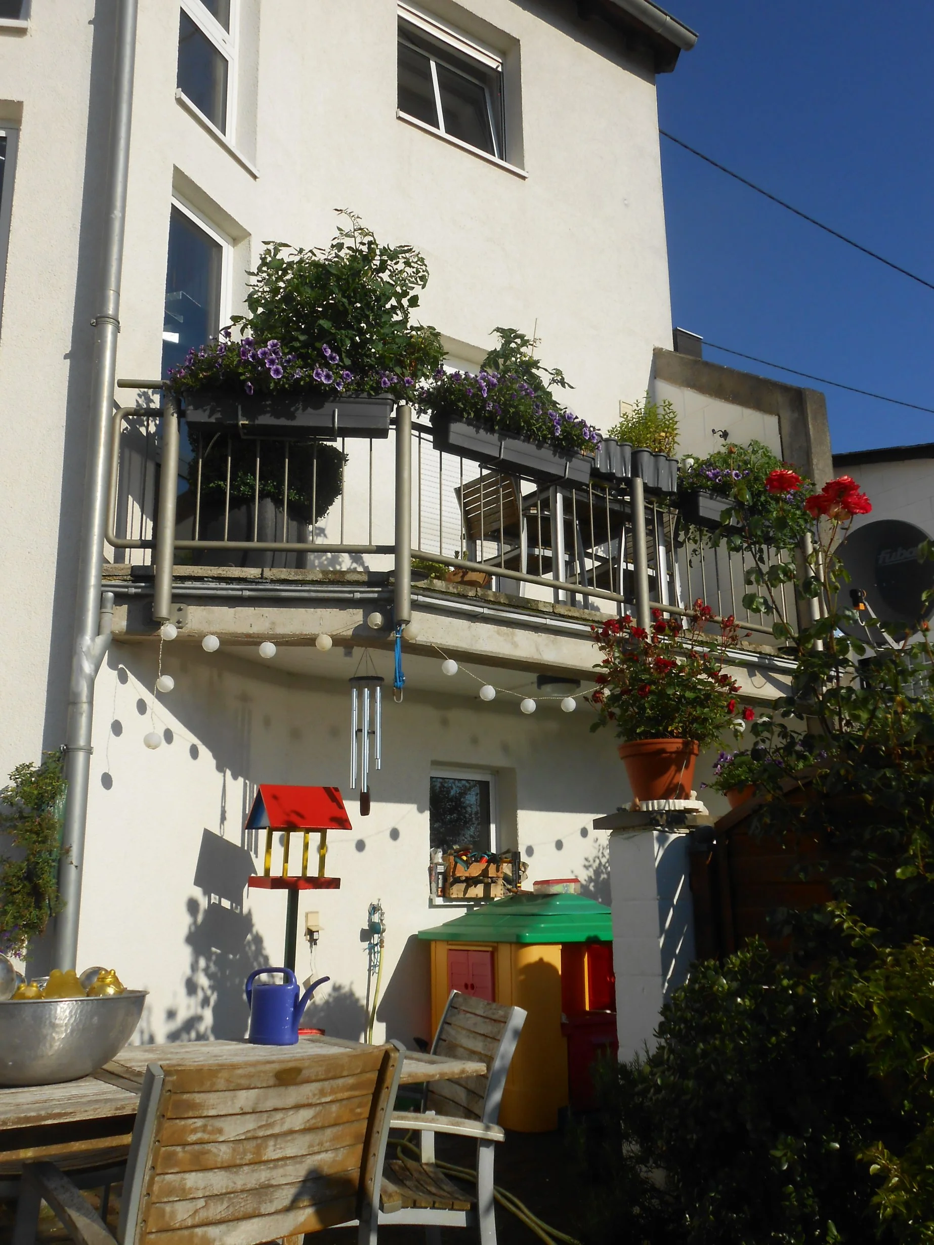 Ich hab auch nichts gegen Geranien - ich bewundere sie sogar, weil sie meinen Balkon und seine Hitze so gut aushalten und so ausdauernd blühen. Aber eigentlich mag ich sie nicht, weil sie halt kein Bienenfutter bereit stellen. Die Typischen Gernaien/Petunienkästen an manchen Balkonen sehen aber von der Straße aus recht schön aus.