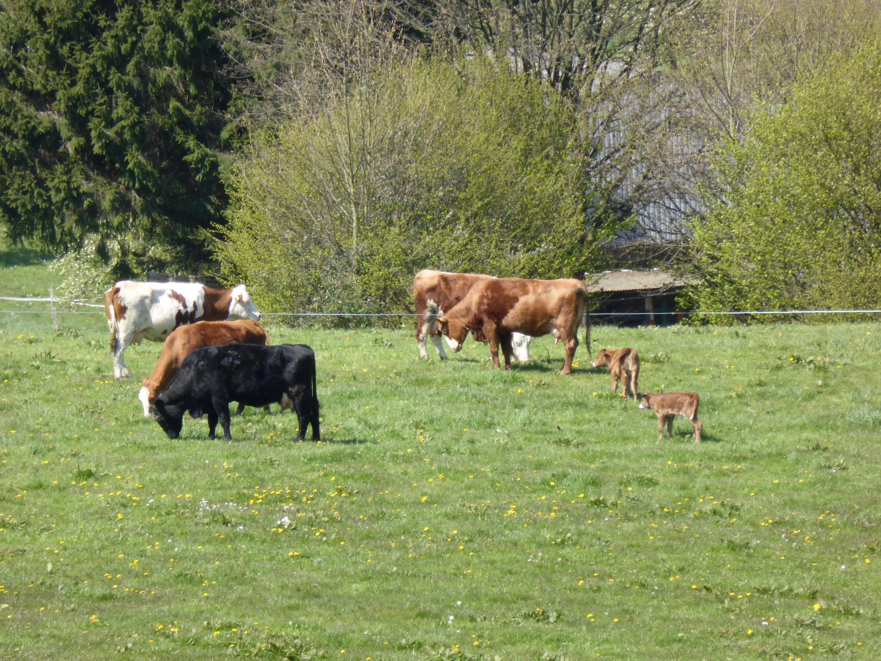 das Bergische Land mit einem Gehöft und eine Kuhherde mit Kindergarten (oder besser "Kälbchengarten":