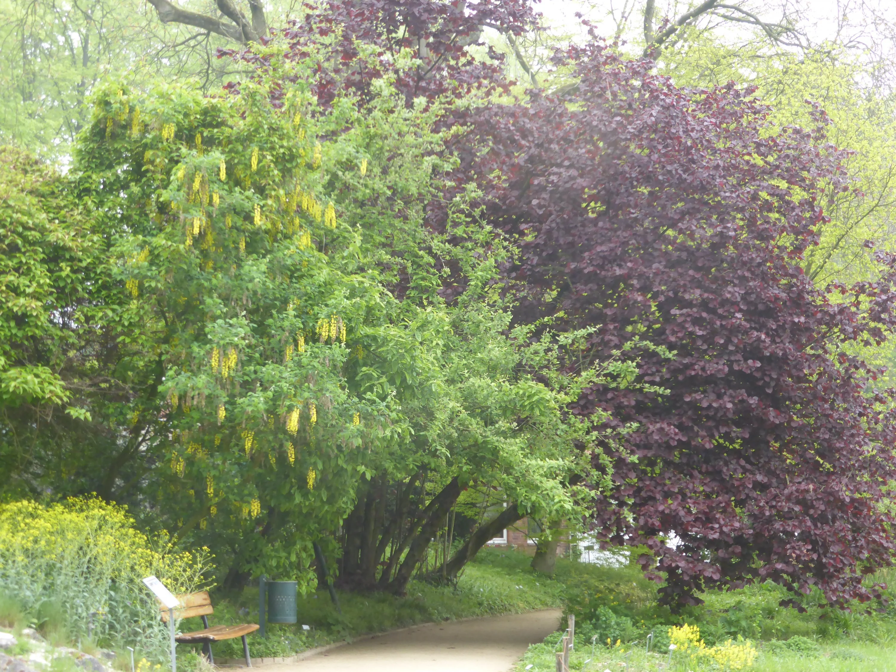 • Ich bin heute früh - noch mit dem letzten Morgendunst - im Botanischen Garten gewesen. Es war wunderschön. Außer mir waren kaum Leute unterwegs, die Vögel zwitscherten. Es blühen noch viele Rhododendren, auch der Taschentuchbaum steht in voller Blüte. Die duftigen Blüten des Bärlauchs bilden ganze Teppiche. Die ersten Rosen blühen.